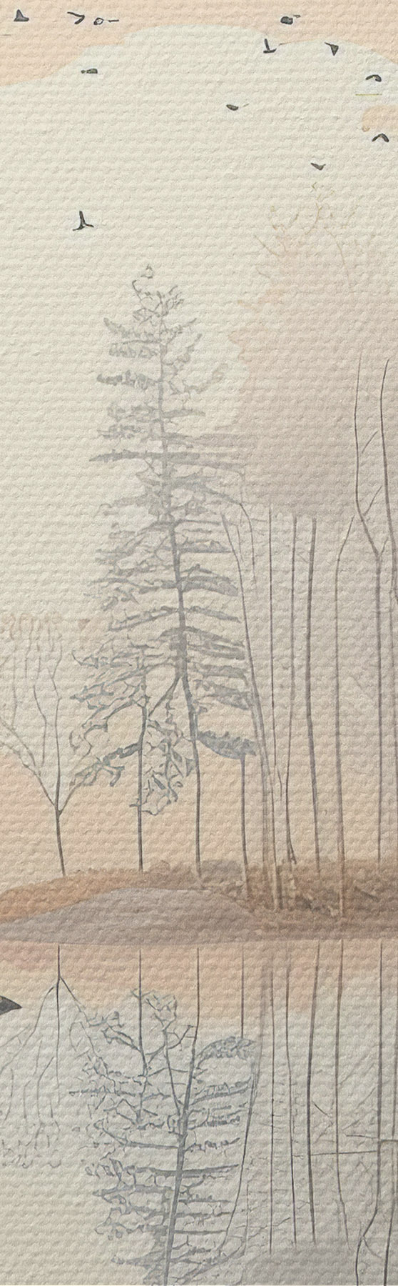 Picturi rotunde Frumos peisaj natural, iaz și copaci, animale sălbatice, culori pastelate moi r39980