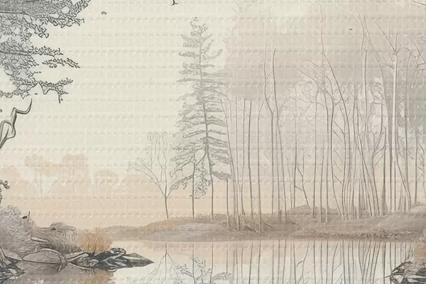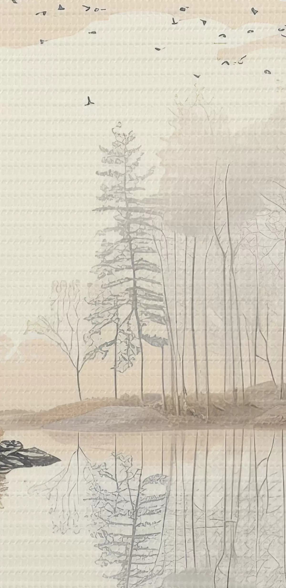 Picturi rotunde Frumos peisaj natural, iaz și copaci, animale sălbatice, culori pastelate moi r39980