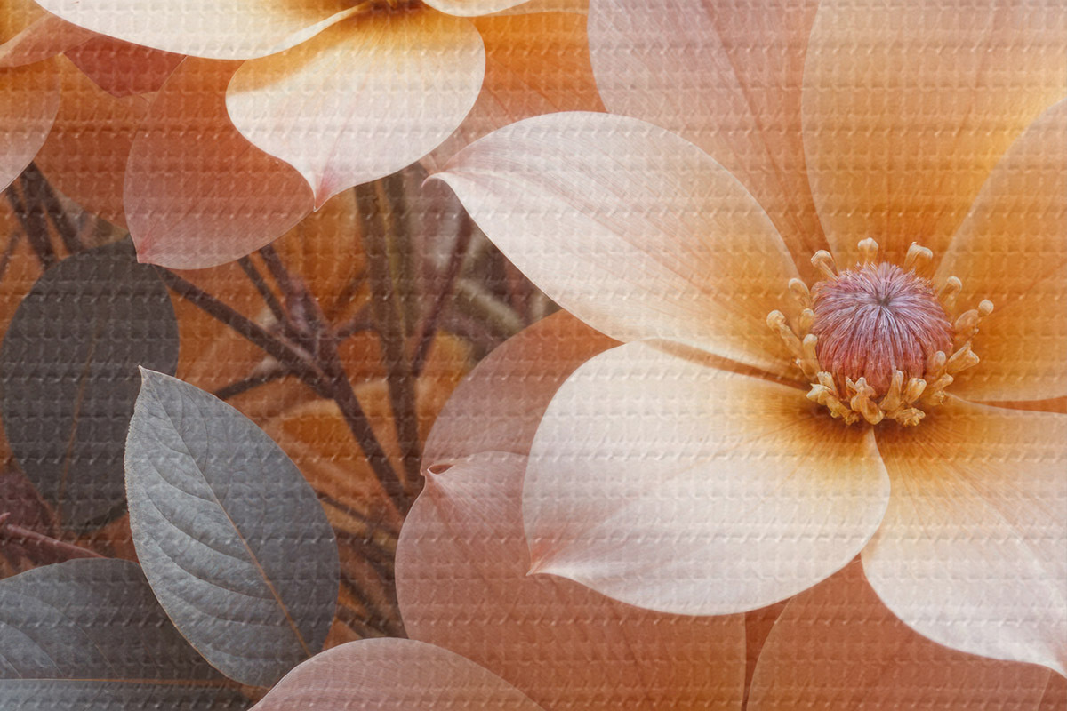 Picturi rotunde Delicate flori dahlia de culoarea piersicii în plină înflorire, cu petale moi pe un fundal neclar r40024