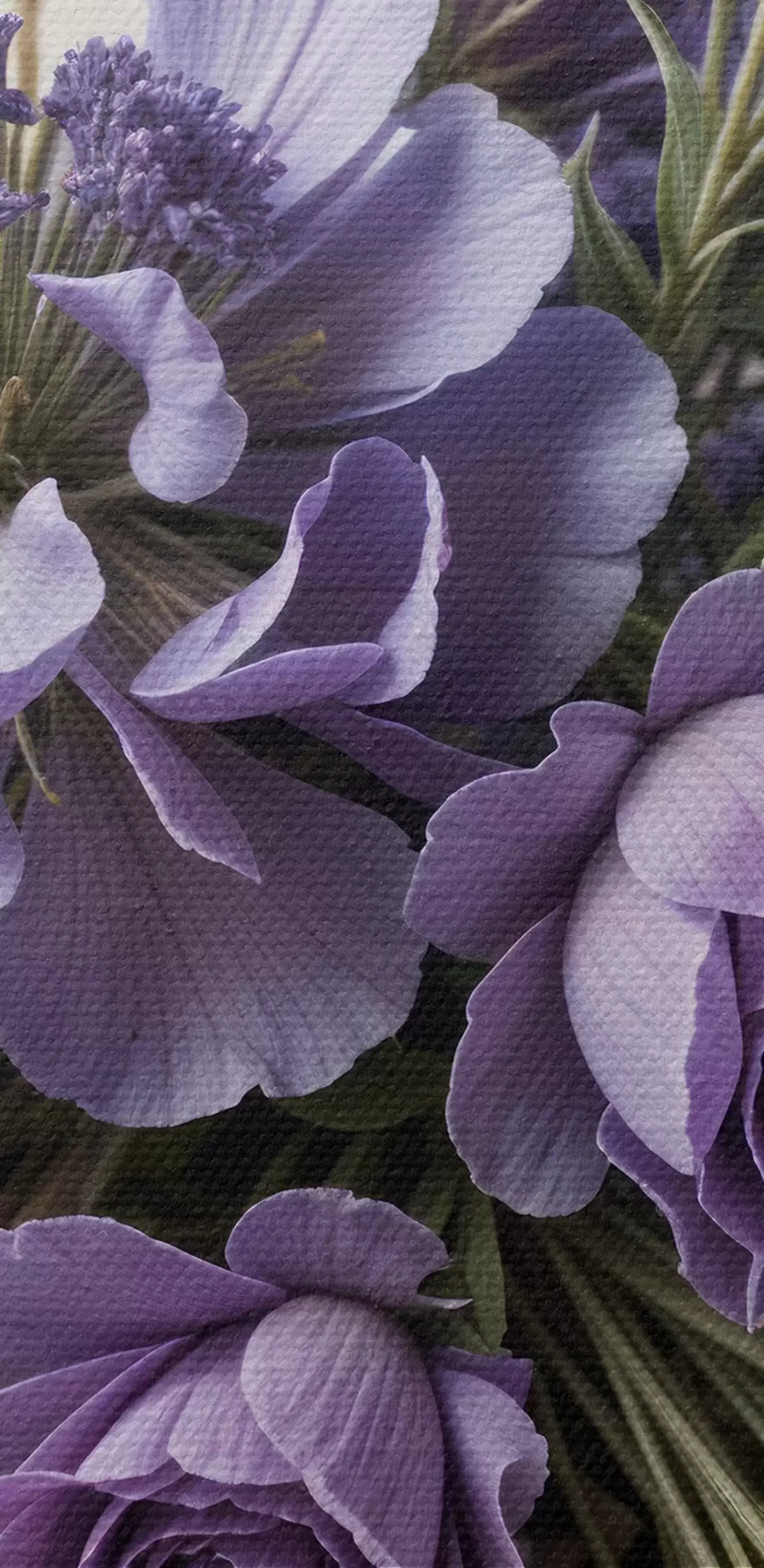 Trei tipuri de materiale sunt disponibile pentru comandă: Economic Canvas - un material dens și durabil pentru imprimarea digitală, identic cu pânza de pictor, suprafață impermeabilă, reproducere realistă a detaliilor, material cu granulație medie. Premium Canvas - textura seamănă cu cea a pânzei unui pictor (fire mici împletite). Reproducere moale, detaliată a imaginii pe o suprafață mată. Eco-Premium - țesătură 100% bumbac de înaltă calitate. Datorită fibrelor naturale de bumbac, materialul este durabil și rezistent la uzură. Reproducere excelentă a culorilor și a detaliilor.