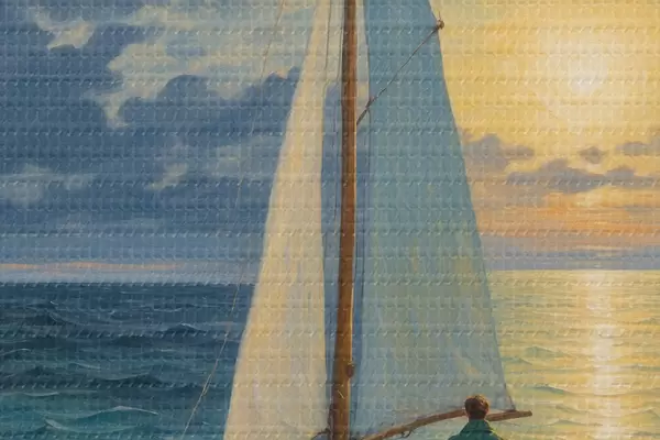 Picturi rotunde Bărbat plutind pe mare într-o barcă Nr r40053