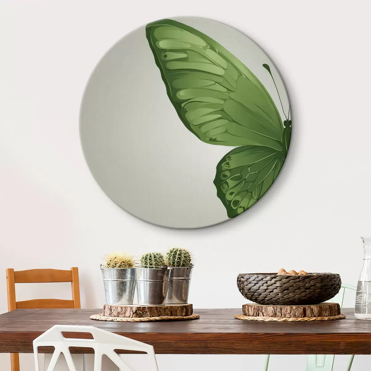 Picturi rotunde Aripa stângă a fluturelui verde pe fundal alb Nr r40062