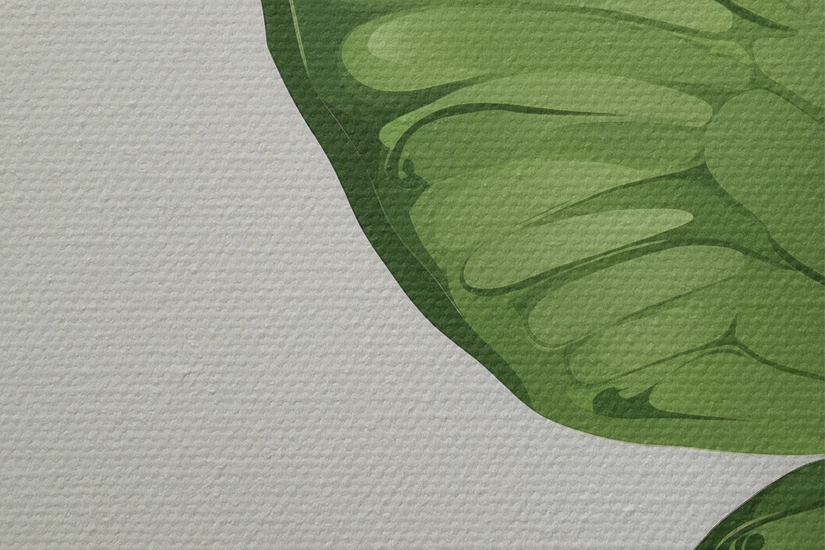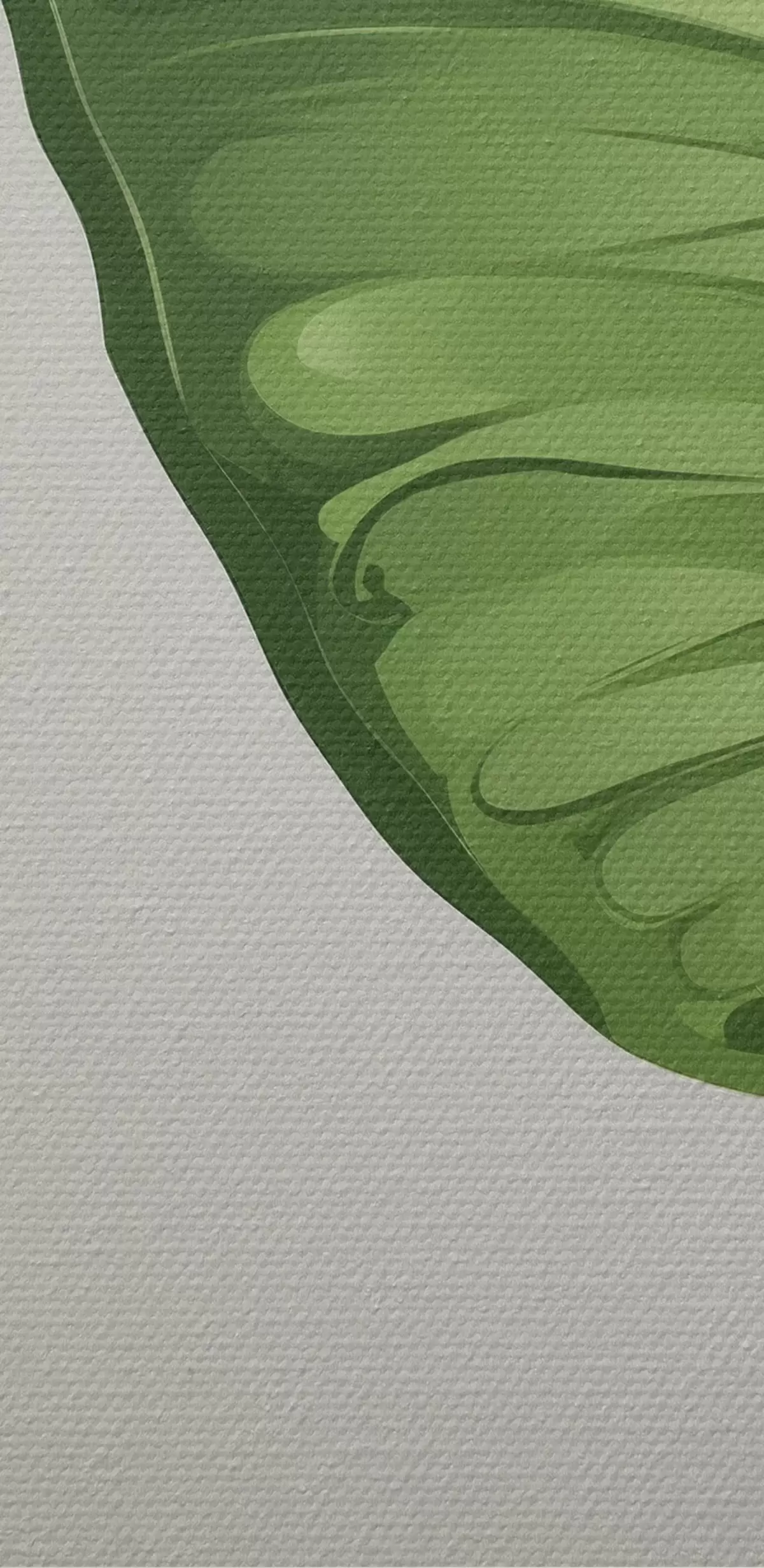Picturi rotunde Aripa stângă a fluturelui verde pe fundal alb r40062