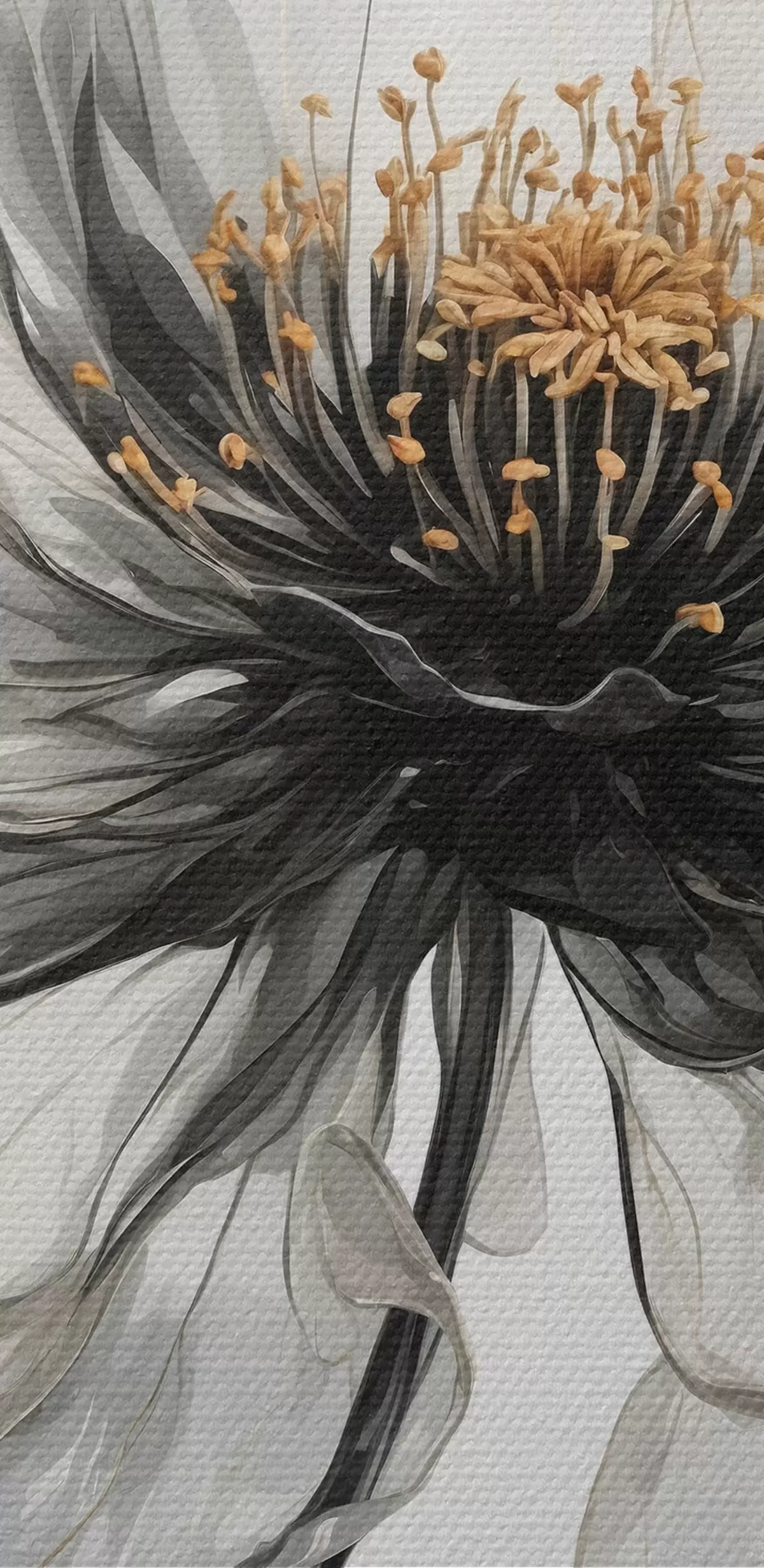 Picturi rotunde Floare neagră transparentă pe fundal alb Nr r40066