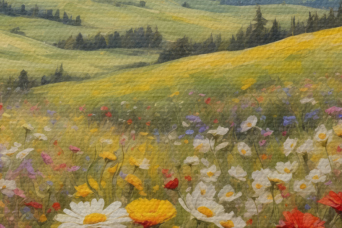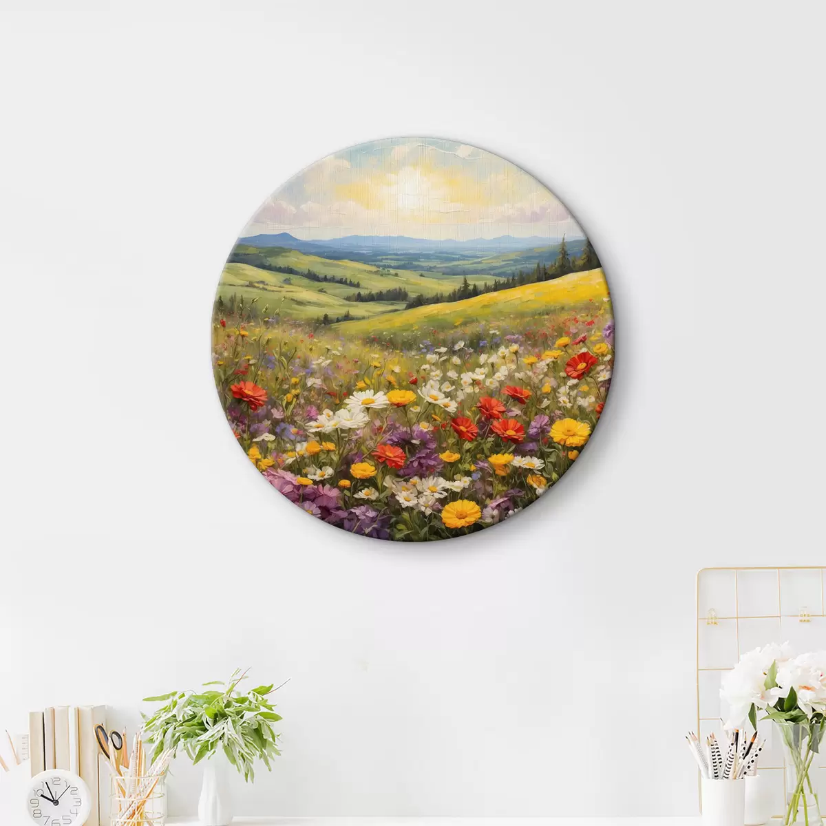 Picturi rotunde Câmp de flori la apus de soare Nr r40073