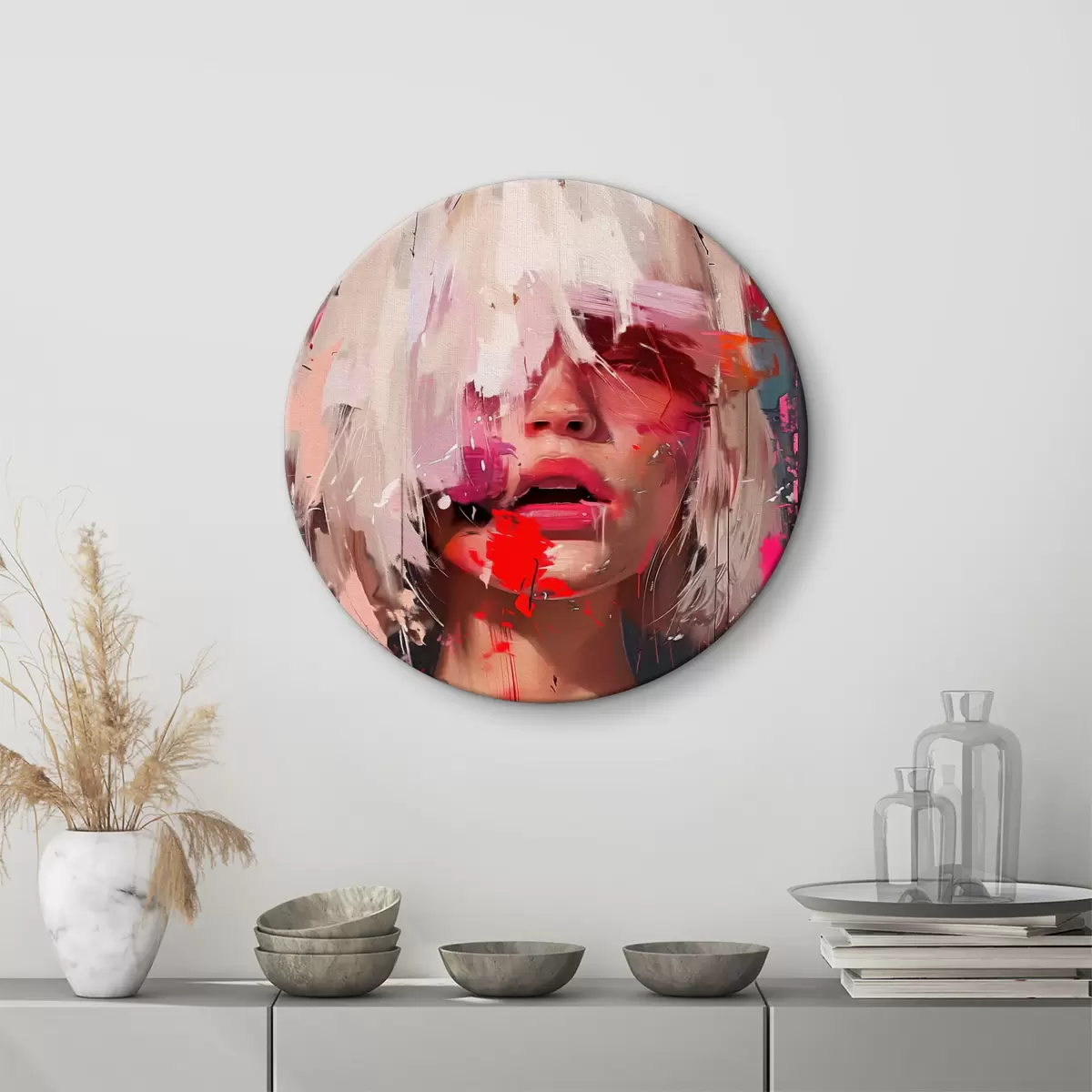 Picturi rotunde Fată blondă cu un bob pătrat și vopsea colorată Nr r40110
