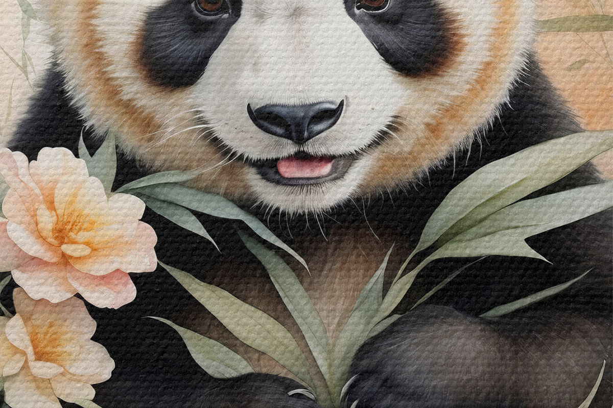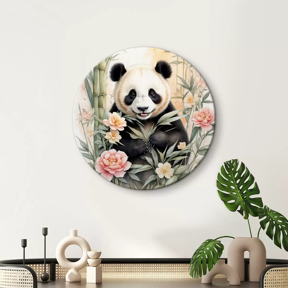 Picturi rotunde Panda cu flori și bambus Nr r40125