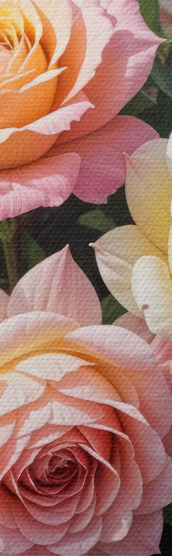 Trei tipuri de materiale sunt disponibile pentru comandă: Economic Canvas - un material dens și durabil pentru imprimarea digitală, identic cu pânza de pictor, suprafață impermeabilă, reproducere realistă a detaliilor, material cu granulație medie. Premium Canvas - textura seamănă cu cea a pânzei unui pictor (fire mici împletite). Reproducere moale, detaliată a imaginii pe o suprafață mată. Eco-Premium - țesătură 100% bumbac de înaltă calitate. Datorită fibrelor naturale de bumbac, materialul este durabil și rezistent la uzură. Reproducere excelentă a culorilor și a detaliilor.