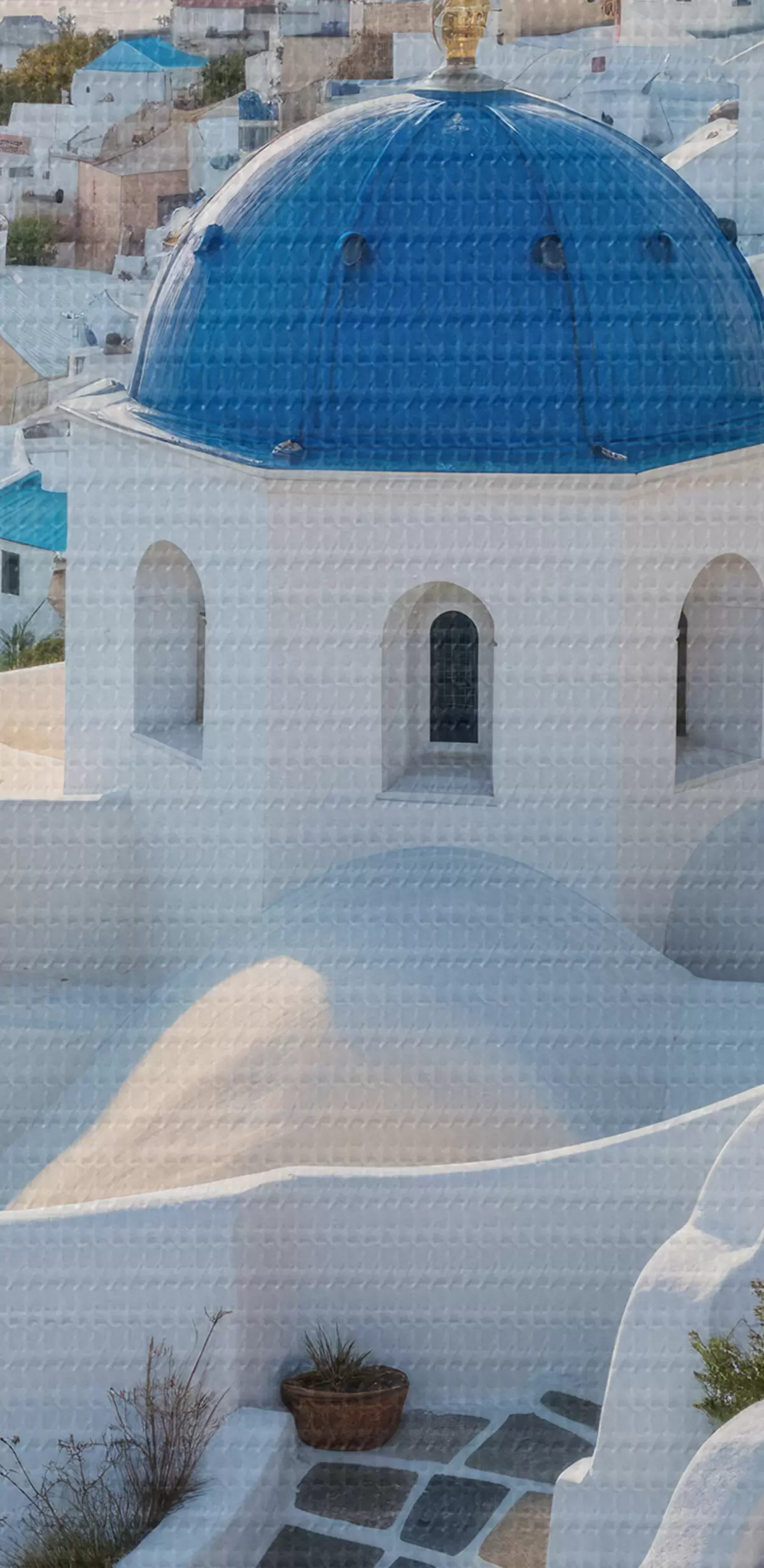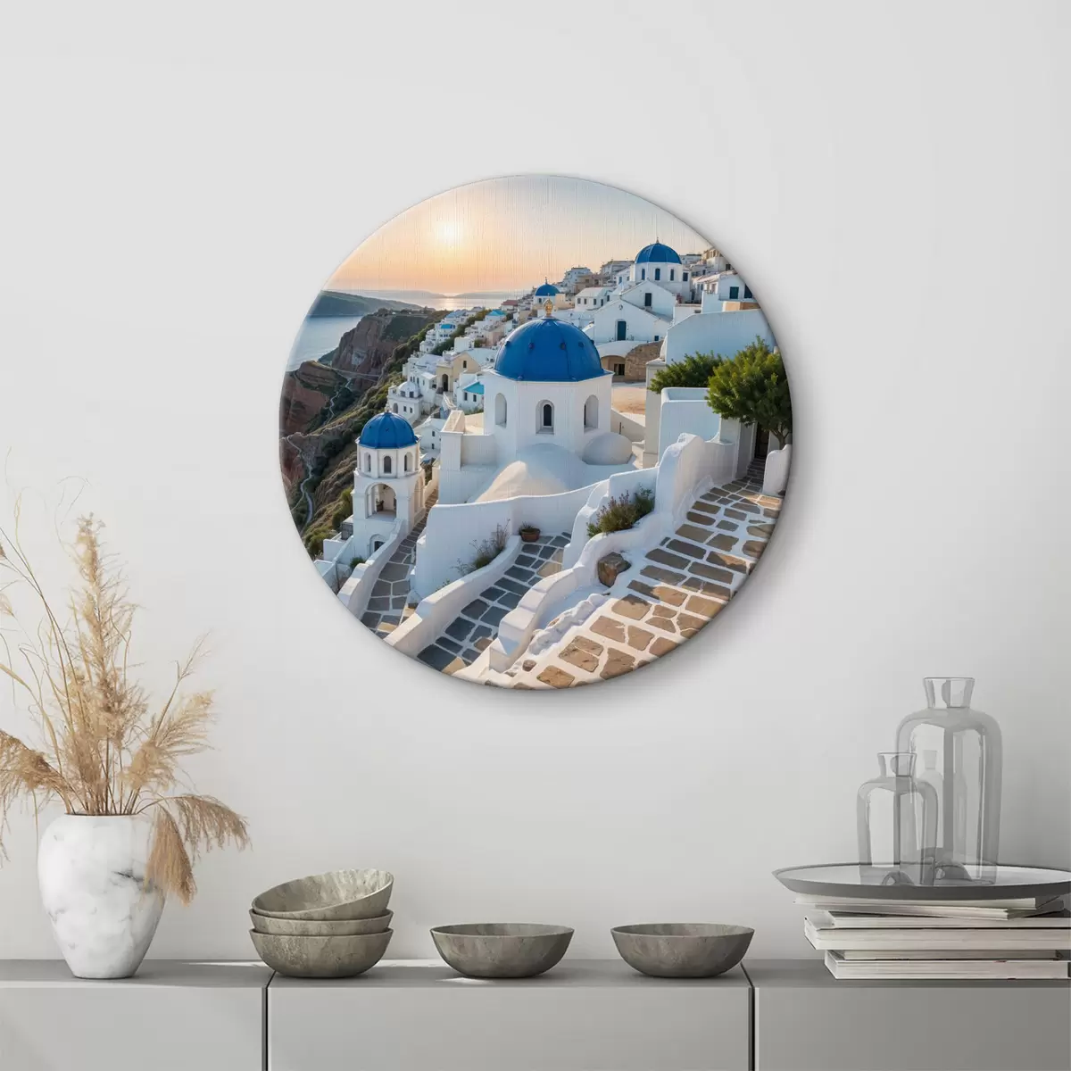 Picturi rotunde Insula Santorini, Grecia. Orașul este construit pe un deal cu vedere la Marea Egee Nr r40160