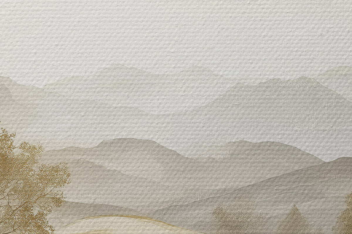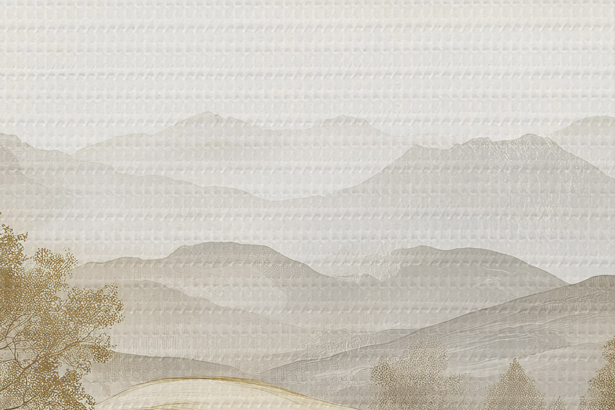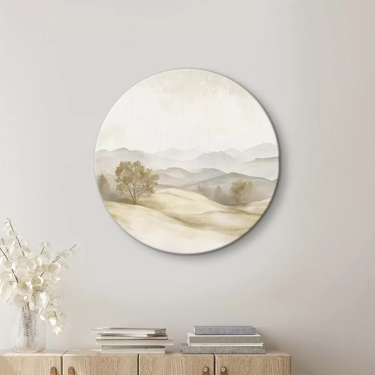 Picturi rotunde Peisaj natural în paleta de culori bej, pajiște, copaci, desen acuarelă Nr r40231
