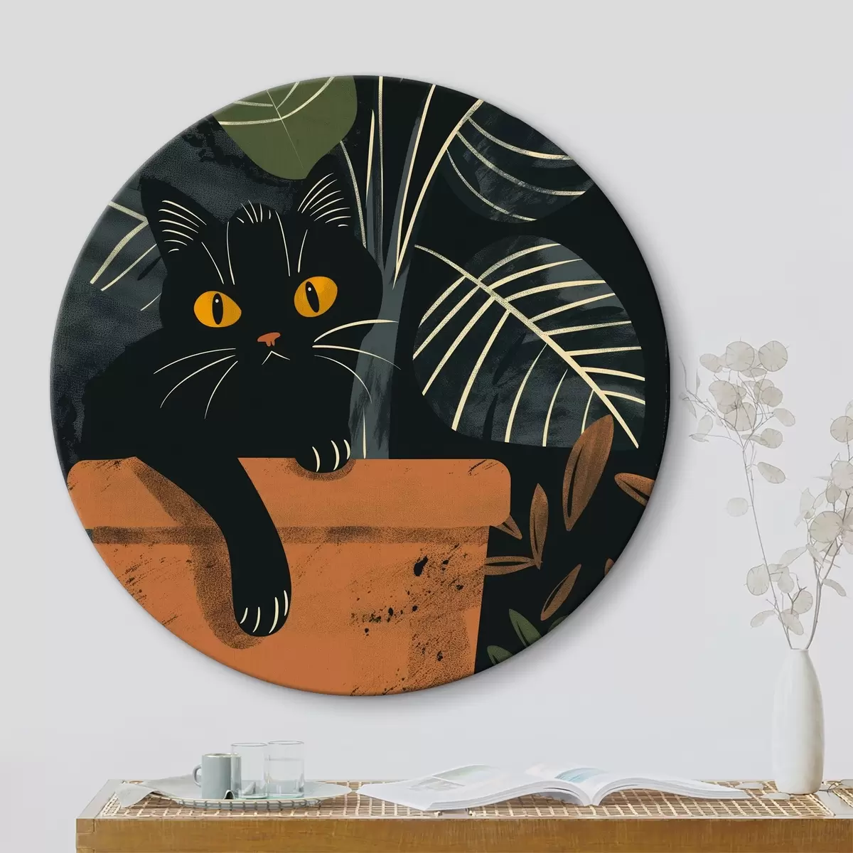 Picturi rotunde Pisică într-o oală cu o floare r40268