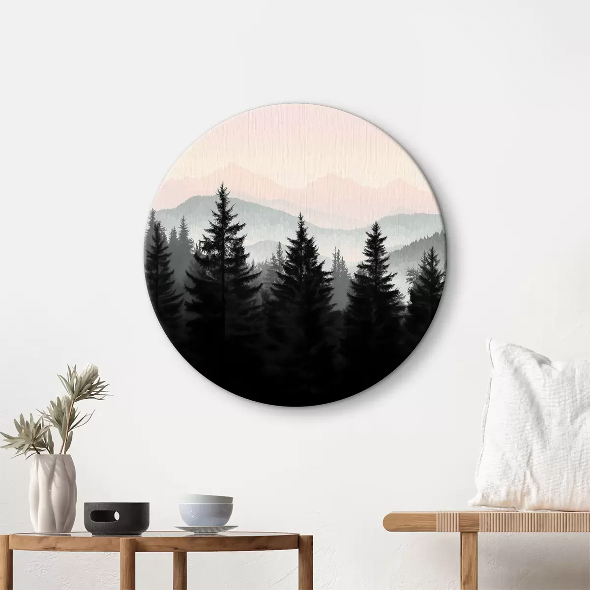 Picturi rotunde Pădure cu munți în fundal Nr r40281