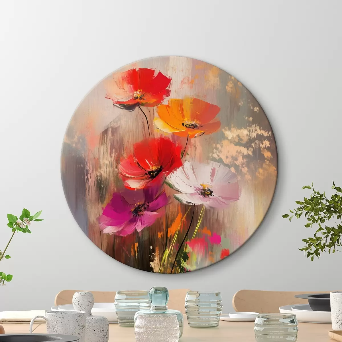 Picturi rotunde Abstract flori luminoase cu tușe de perie Nr r40283