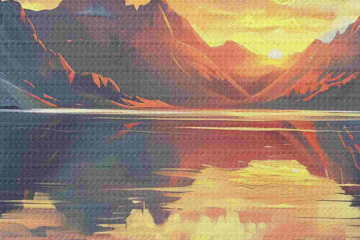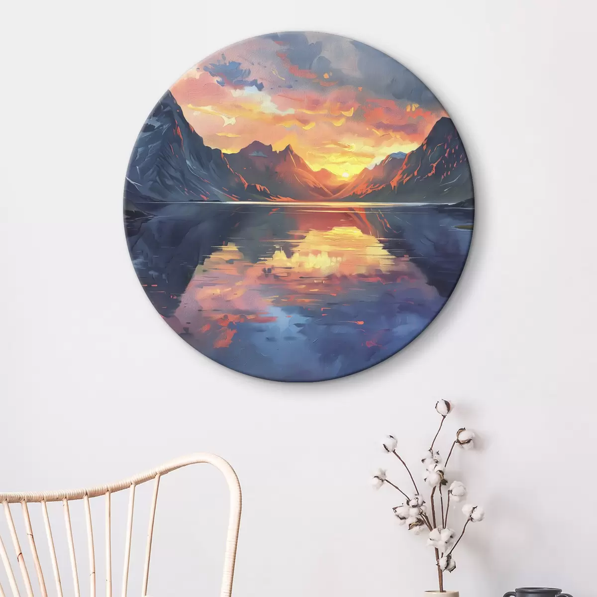 Picturi rotunde Apus de soare în munți, râu, peisaje naturale, vopsea acrilică Nr r40306