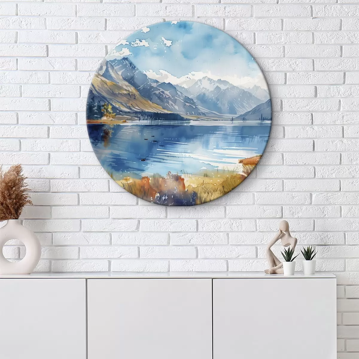Picturi rotunde Peisaj montan acuarelă, culori de toamnă r40308