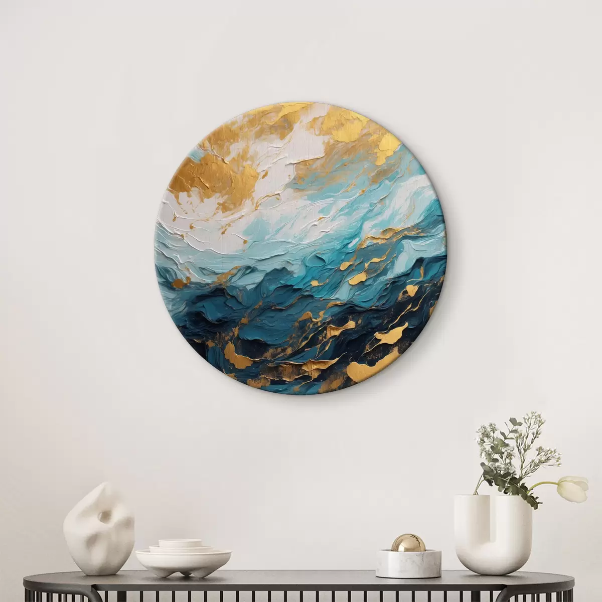 Picturi rotunde Pictură abstractă cu culori albastre și albe Nr r40328