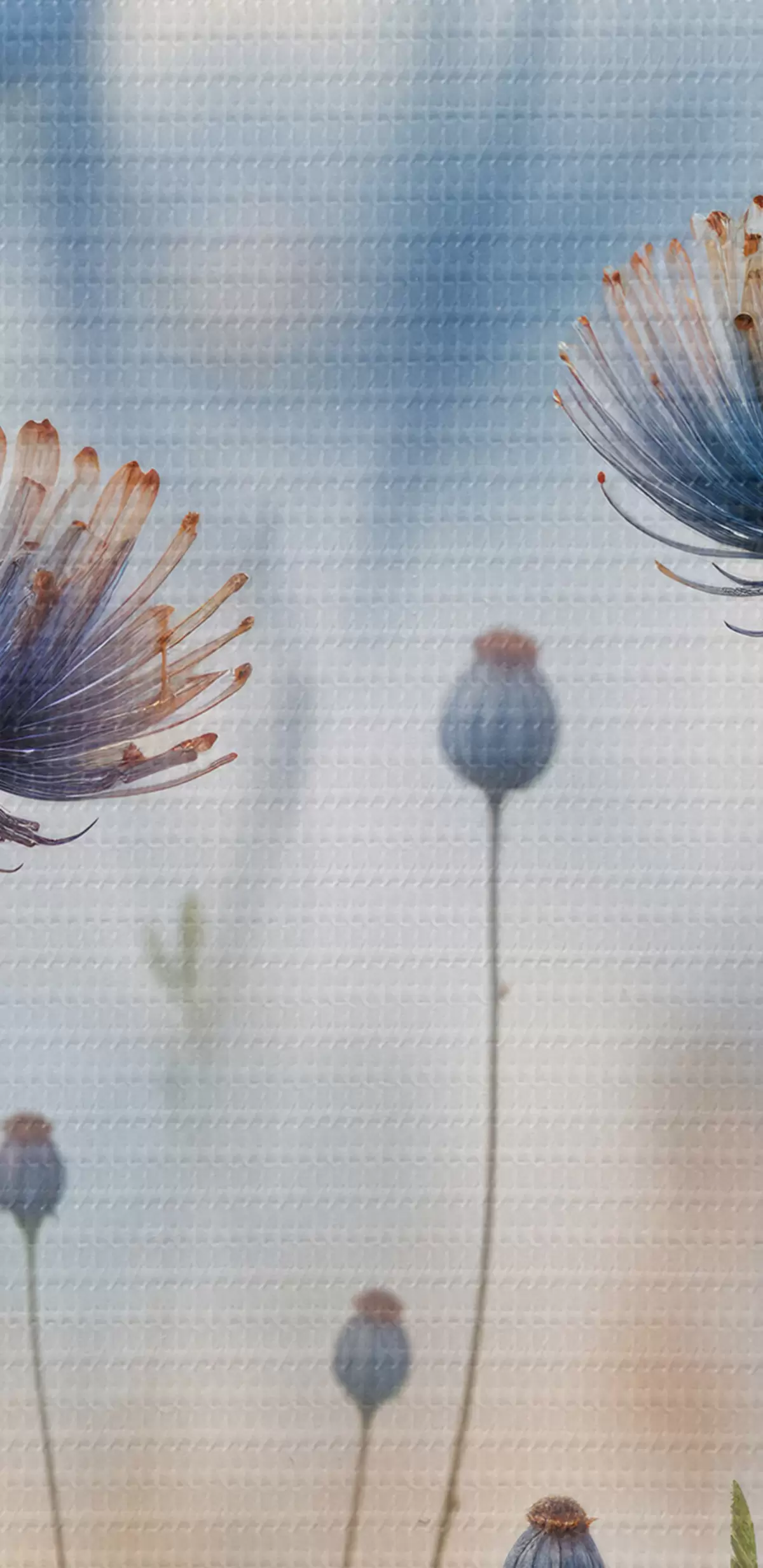 Picturi rotunde Flori înalte, mov, asemănătoare păpădiei, cu fundal neclar, creând o atmosferă senină și de vis Nr r40414