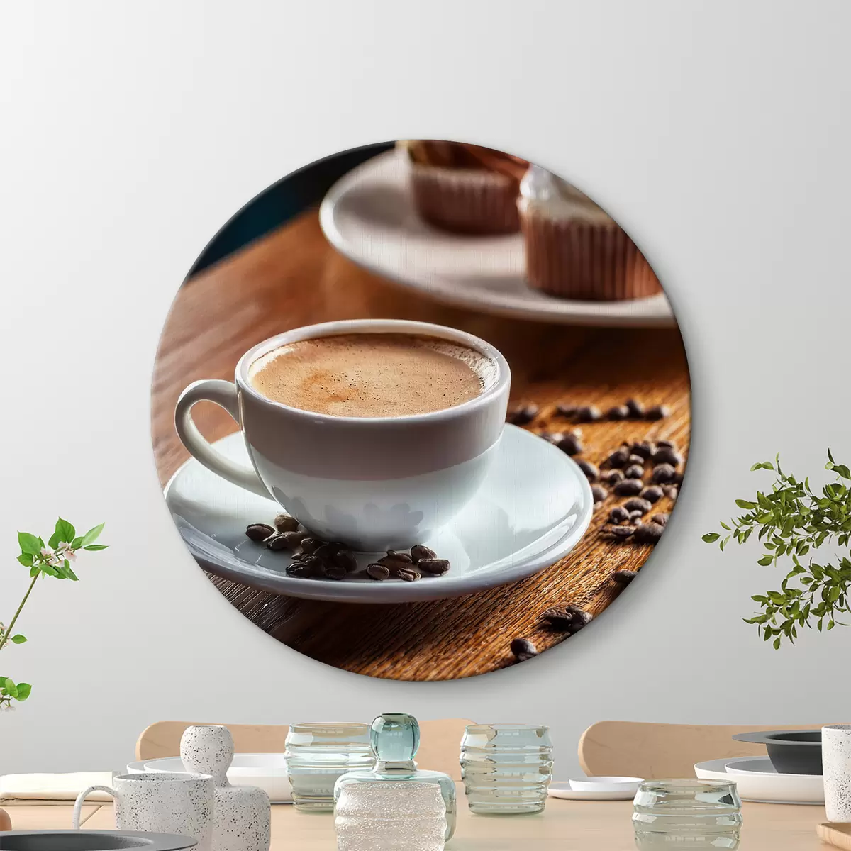 Picturi rotunde ceașcă de cafea, boabe de cafea, prăjituri, natură moartă Nr r40417