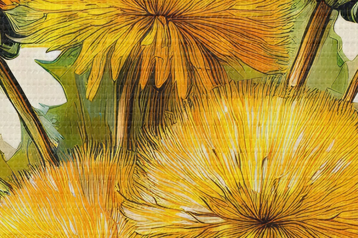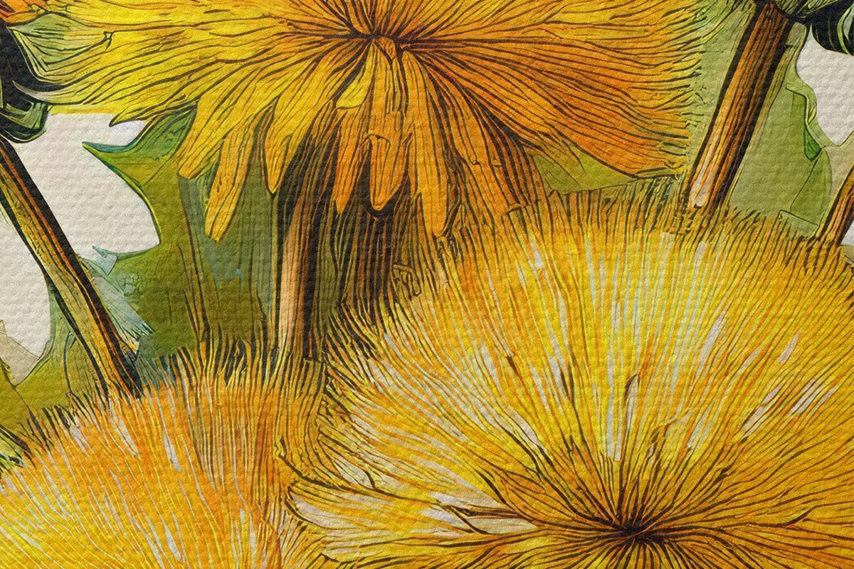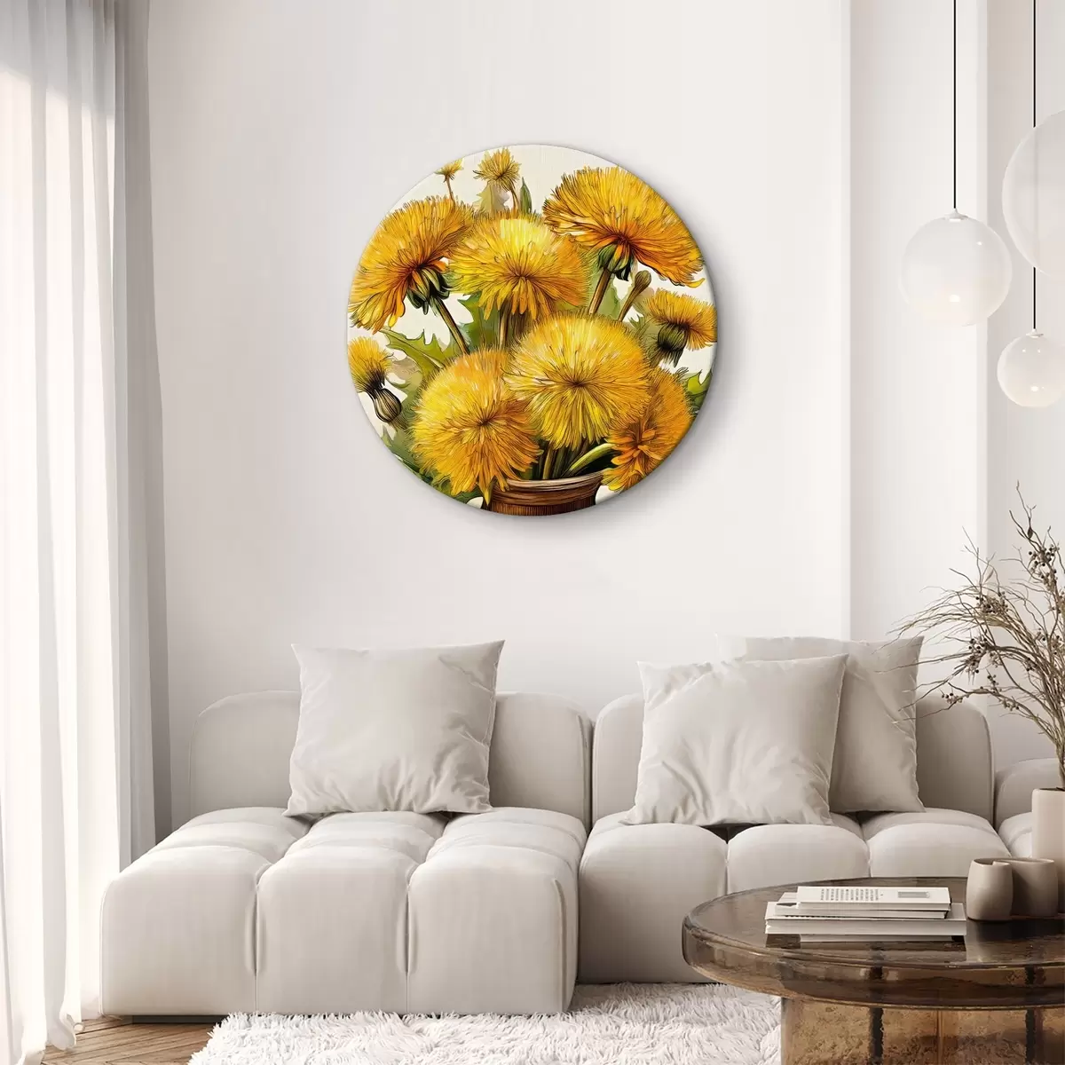 Picturi rotunde păpădie, buchet de păpădie într-o vază, păpădie galbenă Nr r40418