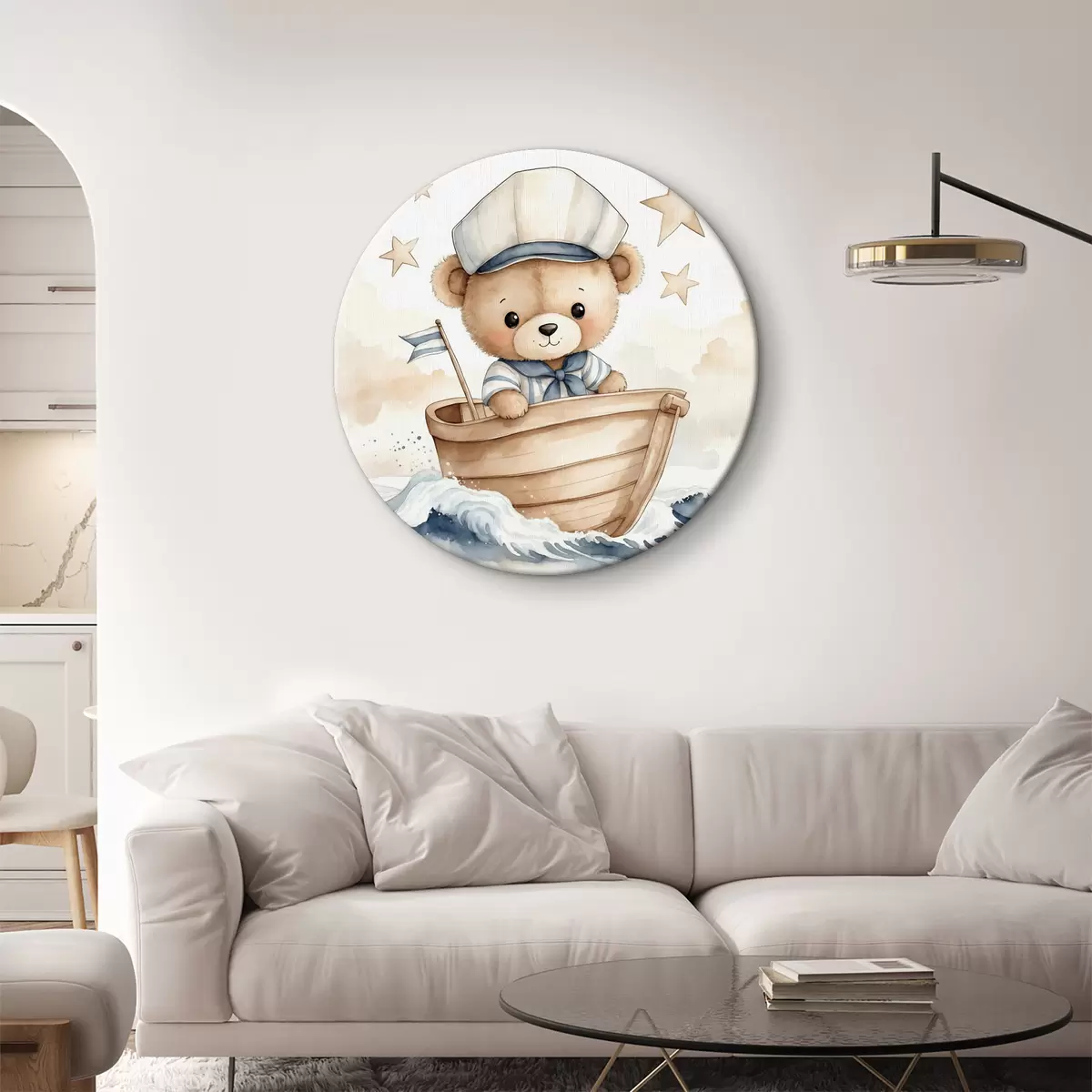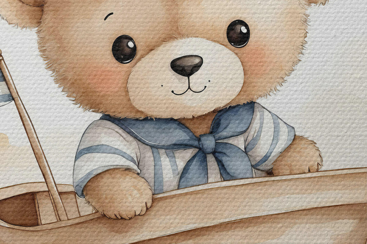Picturi rotunde Drăguț urs acuarelă într-o barcă Nr r40428