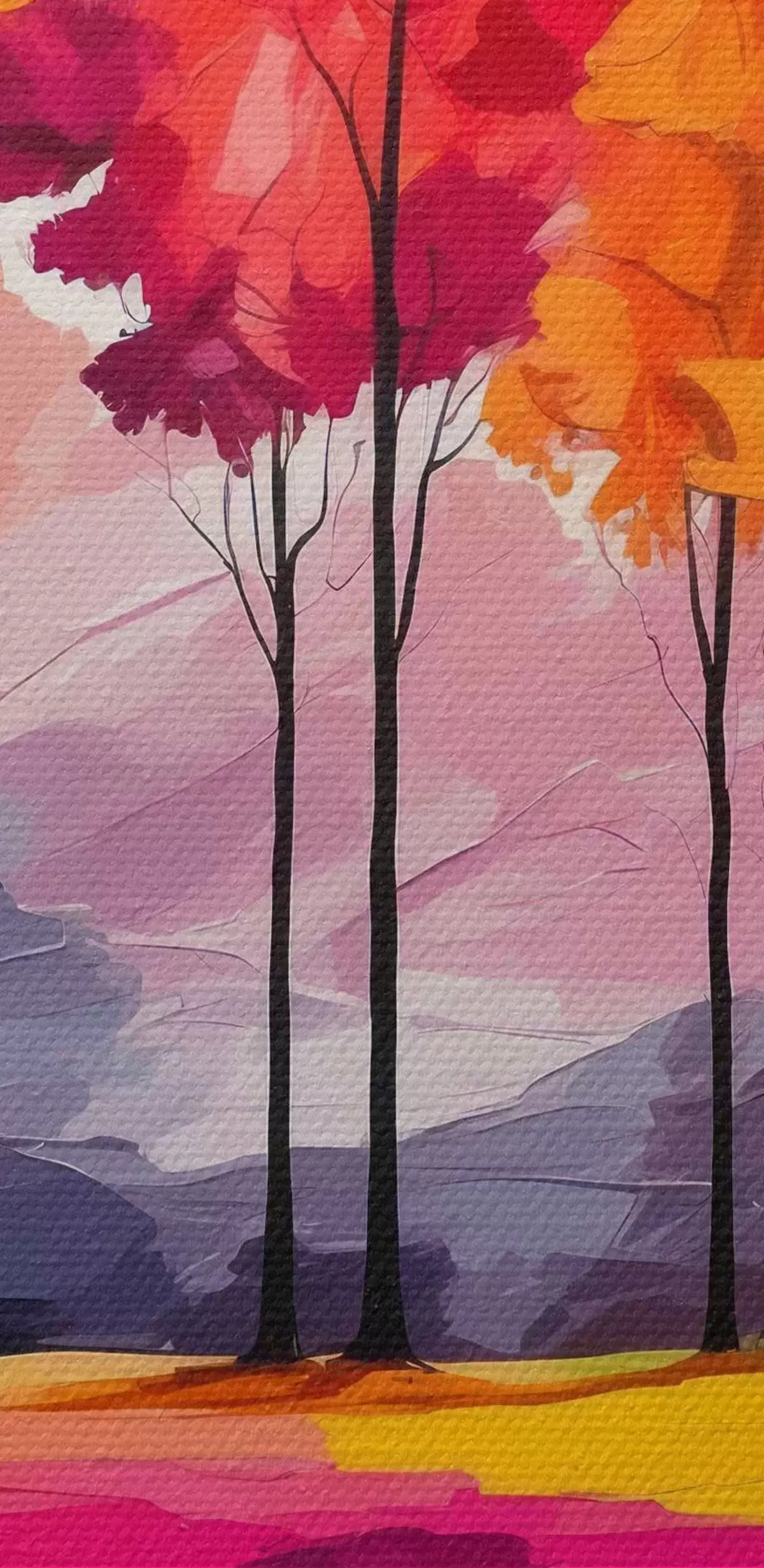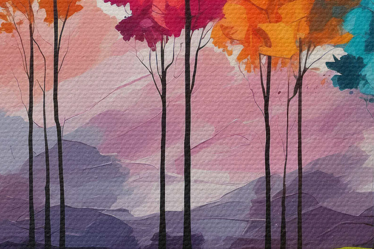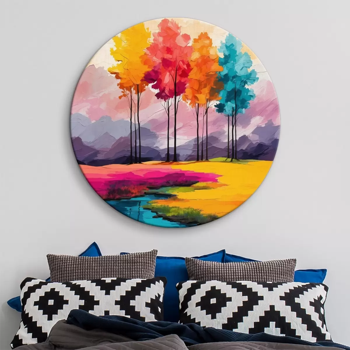 Picturi rotunde Copaci acrilici multicolori Nr r40456