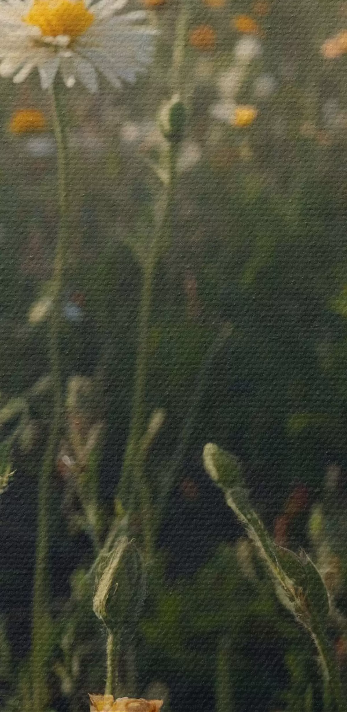 Țesătura fină a firelor de pe această pânză seamănă cu suprafața pânzelor artiștilor profesioniști.