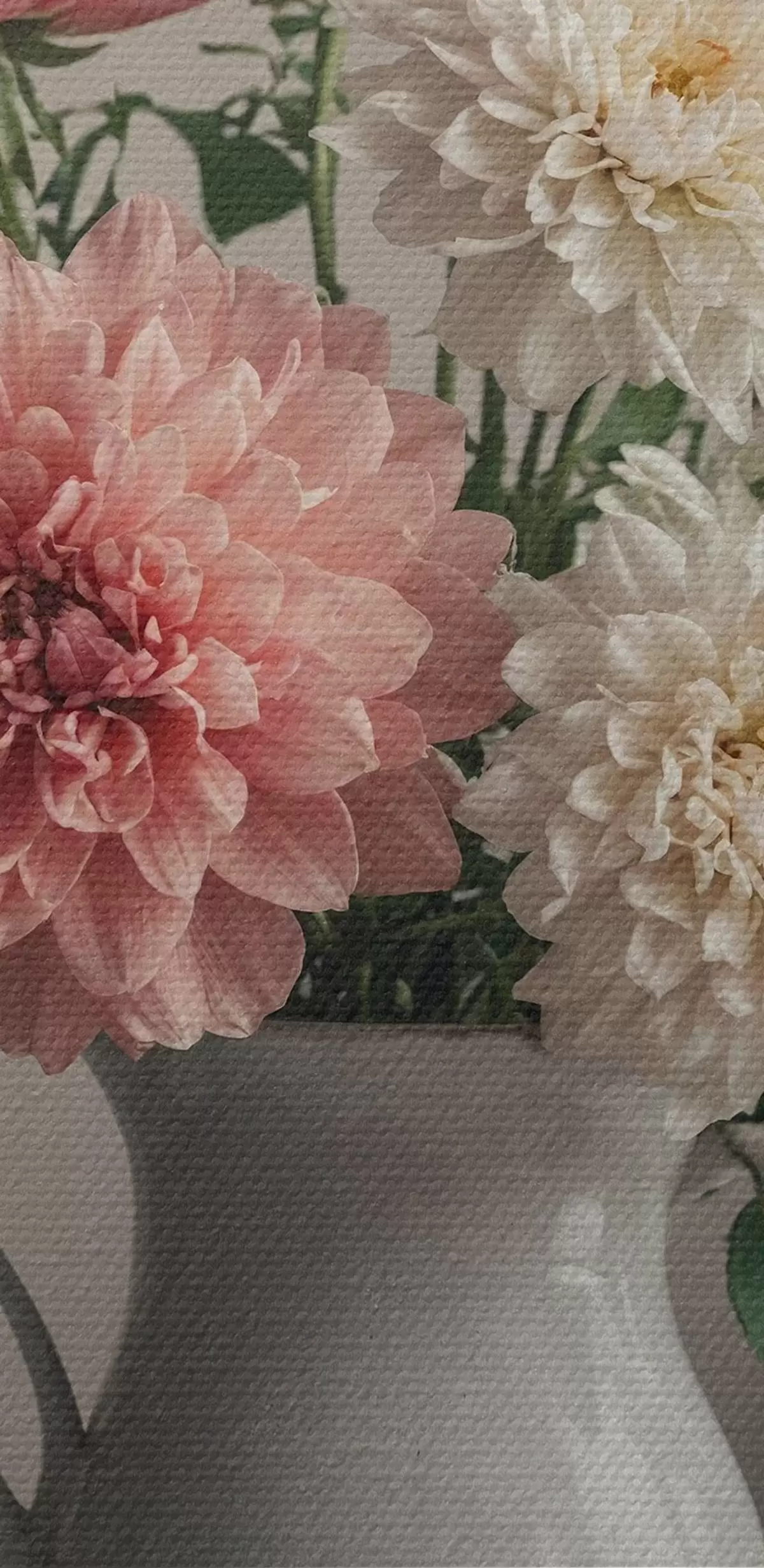 Trei tipuri de materiale sunt disponibile pentru comandă: Economic Canvas - un material dens și durabil pentru imprimarea digitală, identic cu pânza de pictor, suprafață impermeabilă, reproducere realistă a detaliilor, material cu granulație medie. Premium Canvas - textura seamănă cu cea a pânzei unui pictor (fire mici împletite). Reproducere moale, detaliată a imaginii pe o suprafață mată. Eco-Premium - țesătură 100% bumbac de înaltă calitate. Datorită fibrelor naturale de bumbac, materialul este durabil și rezistent la uzură. Reproducere excelentă a culorilor și a detaliilor.