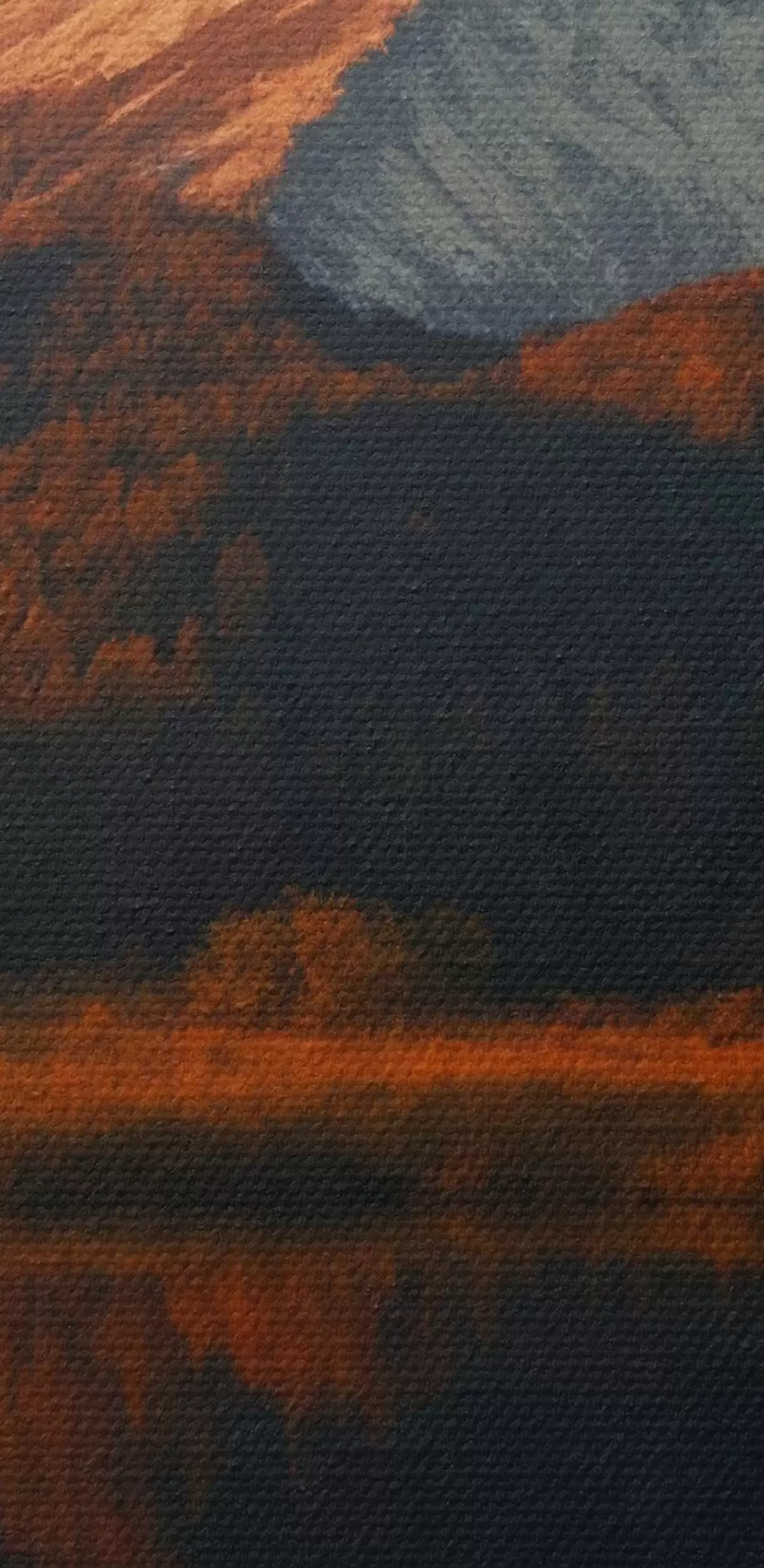 Țesătura fină a firelor de pe această pânză seamănă cu suprafața pânzelor artiștilor profesioniști.