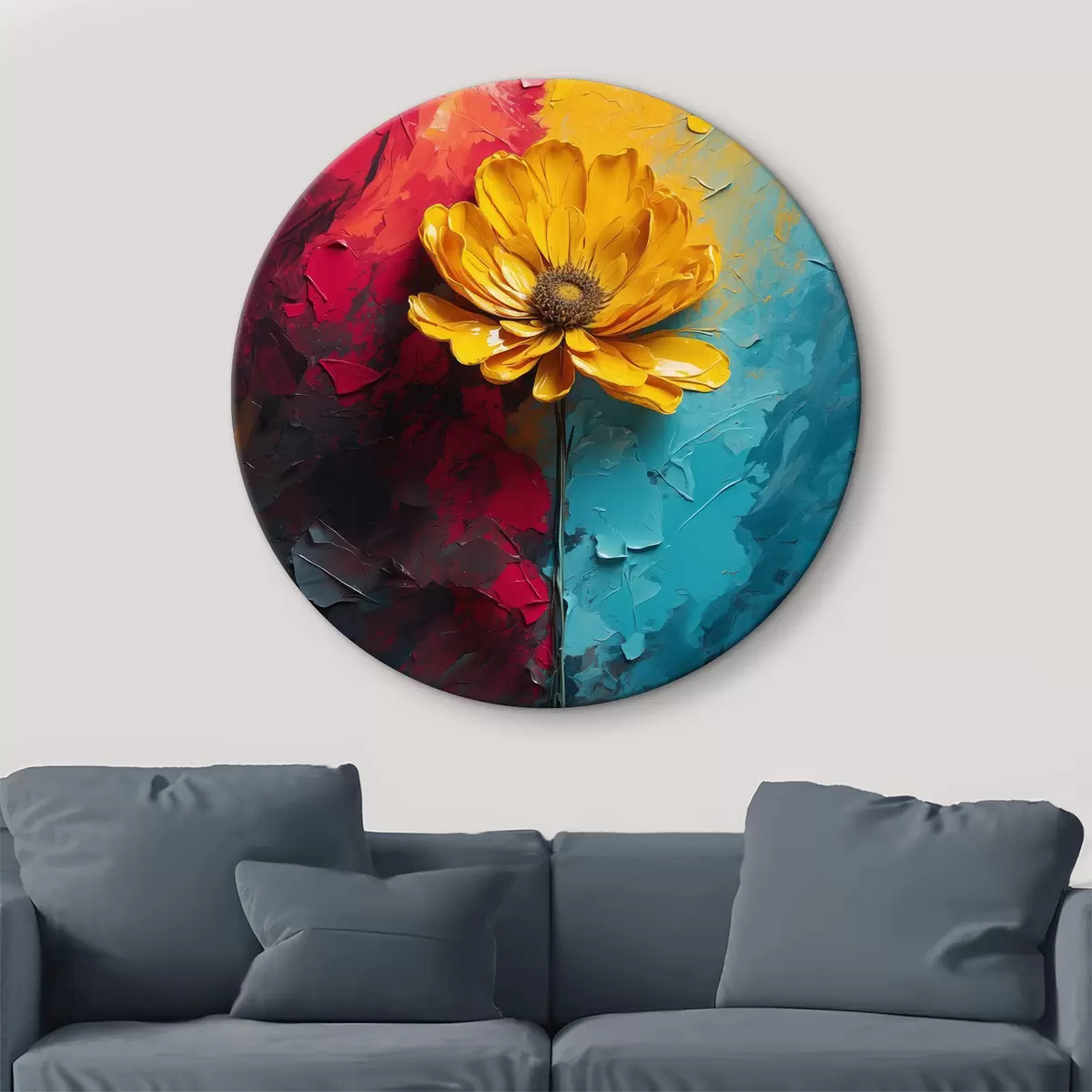 Picturi rotunde Floare galbenă pe un fundal abstract acrilic Nr r40483