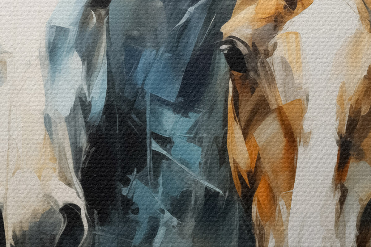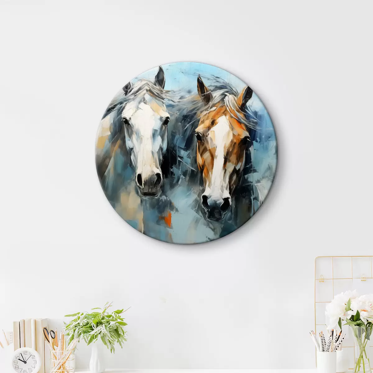 Picturi rotunde Pictură abstractă cai, culoare alb, albastru, maro r40493