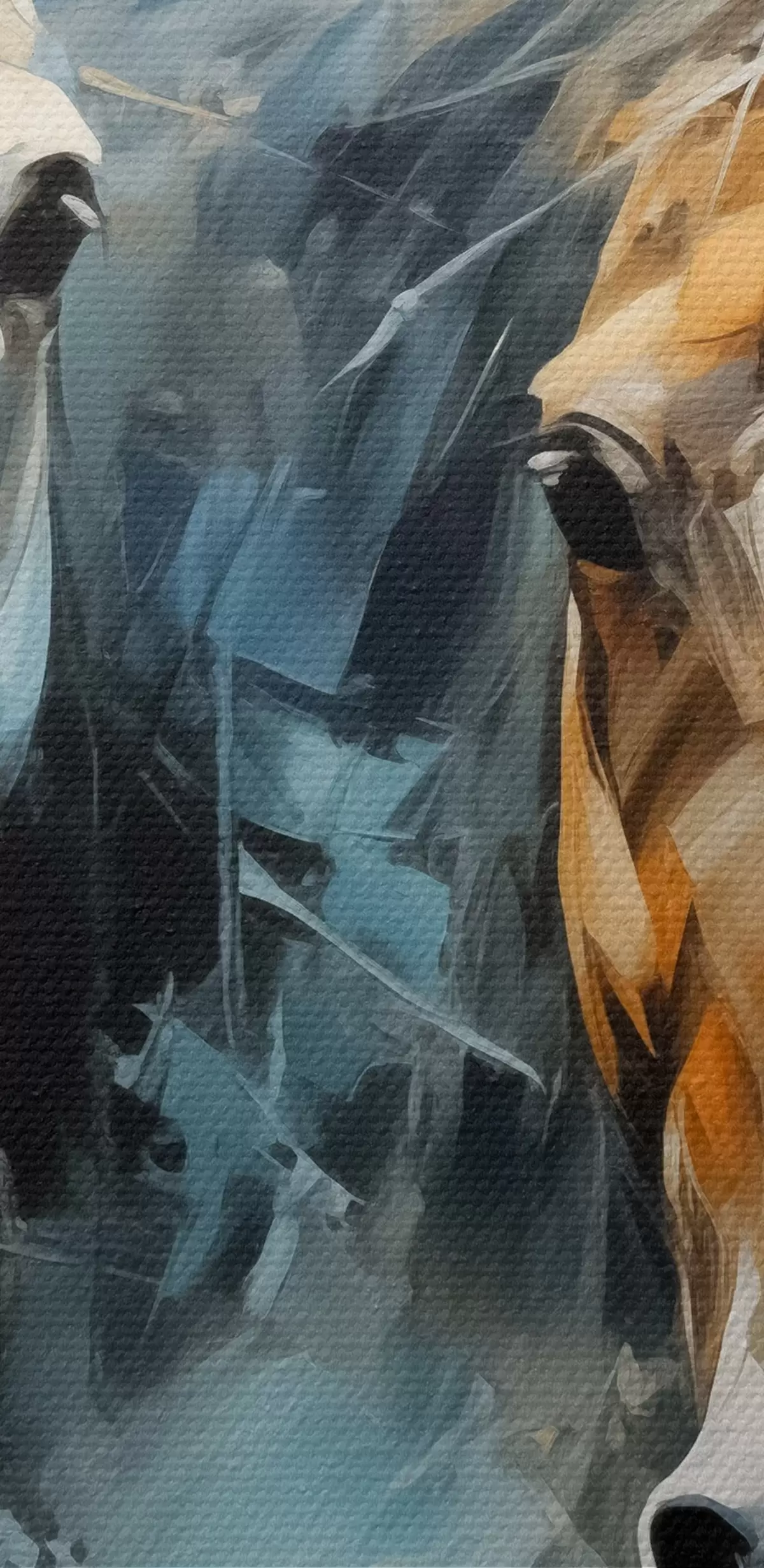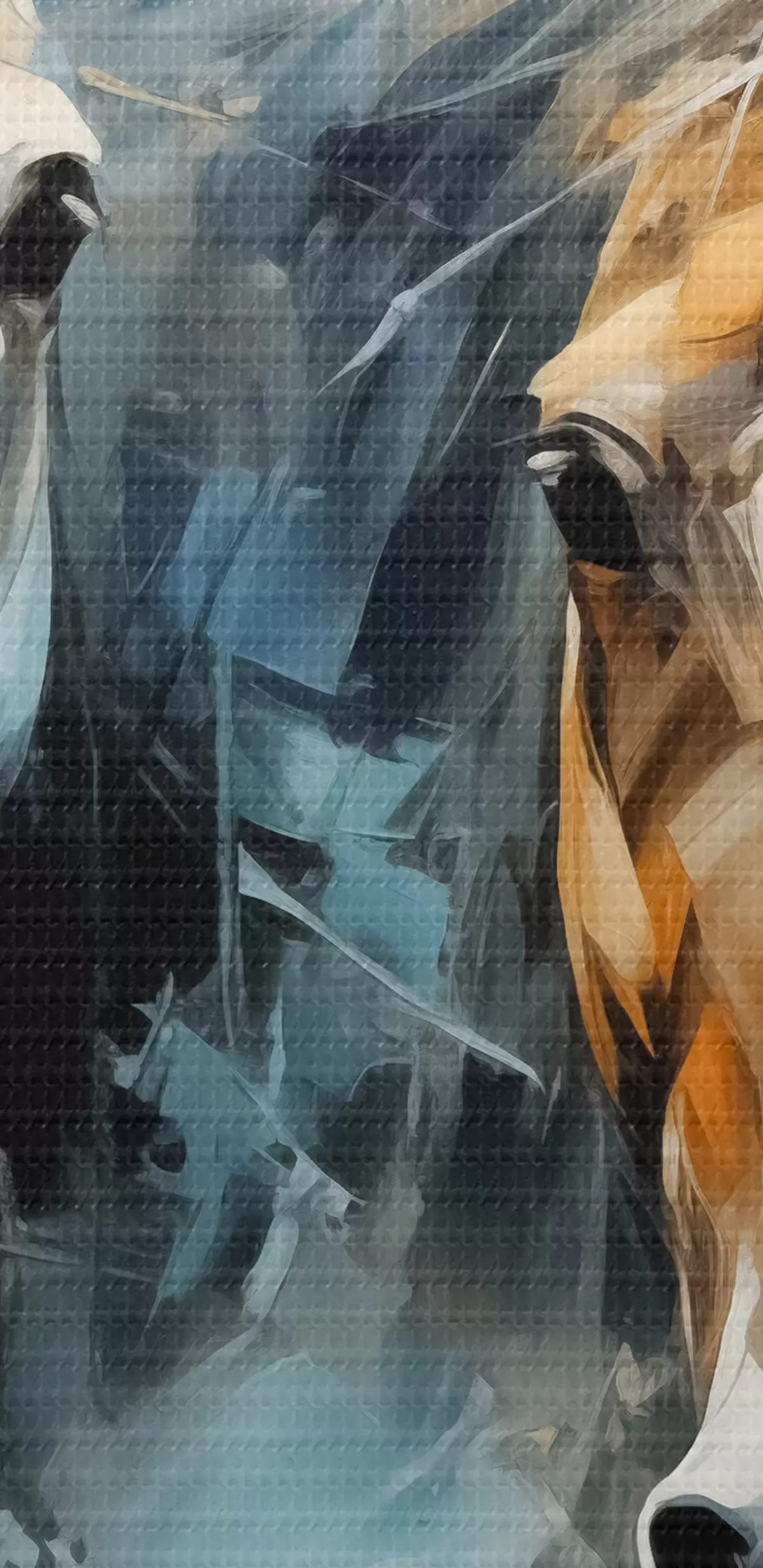 Picturi rotunde Pictură abstractă cai, culoare alb, albastru, maro Nr r40493