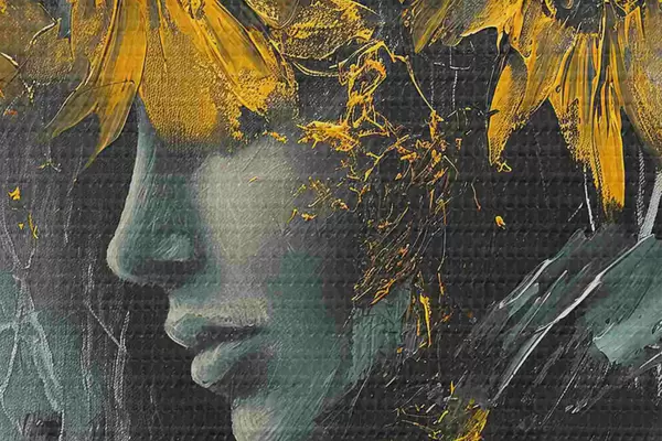 Picturi rotunde Floarea-soarelui abstractă care acoperă fața fetei Nr r40501
