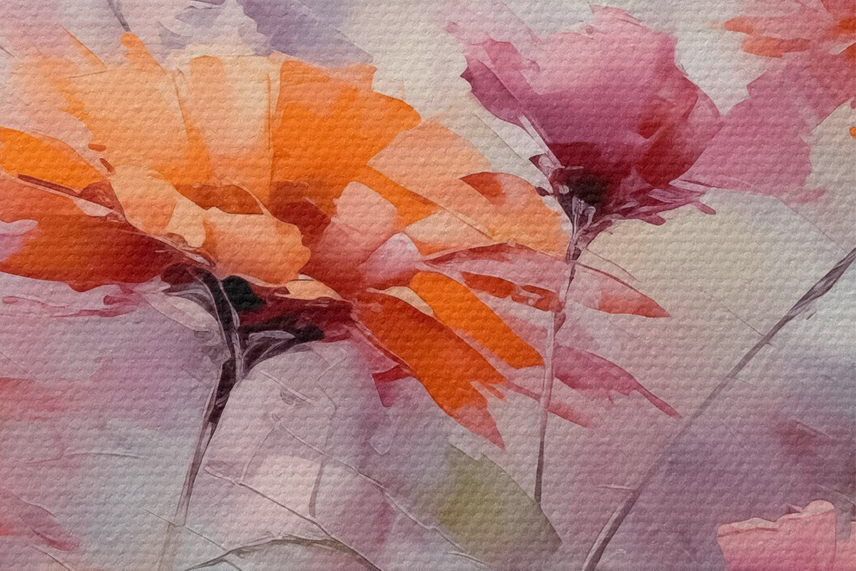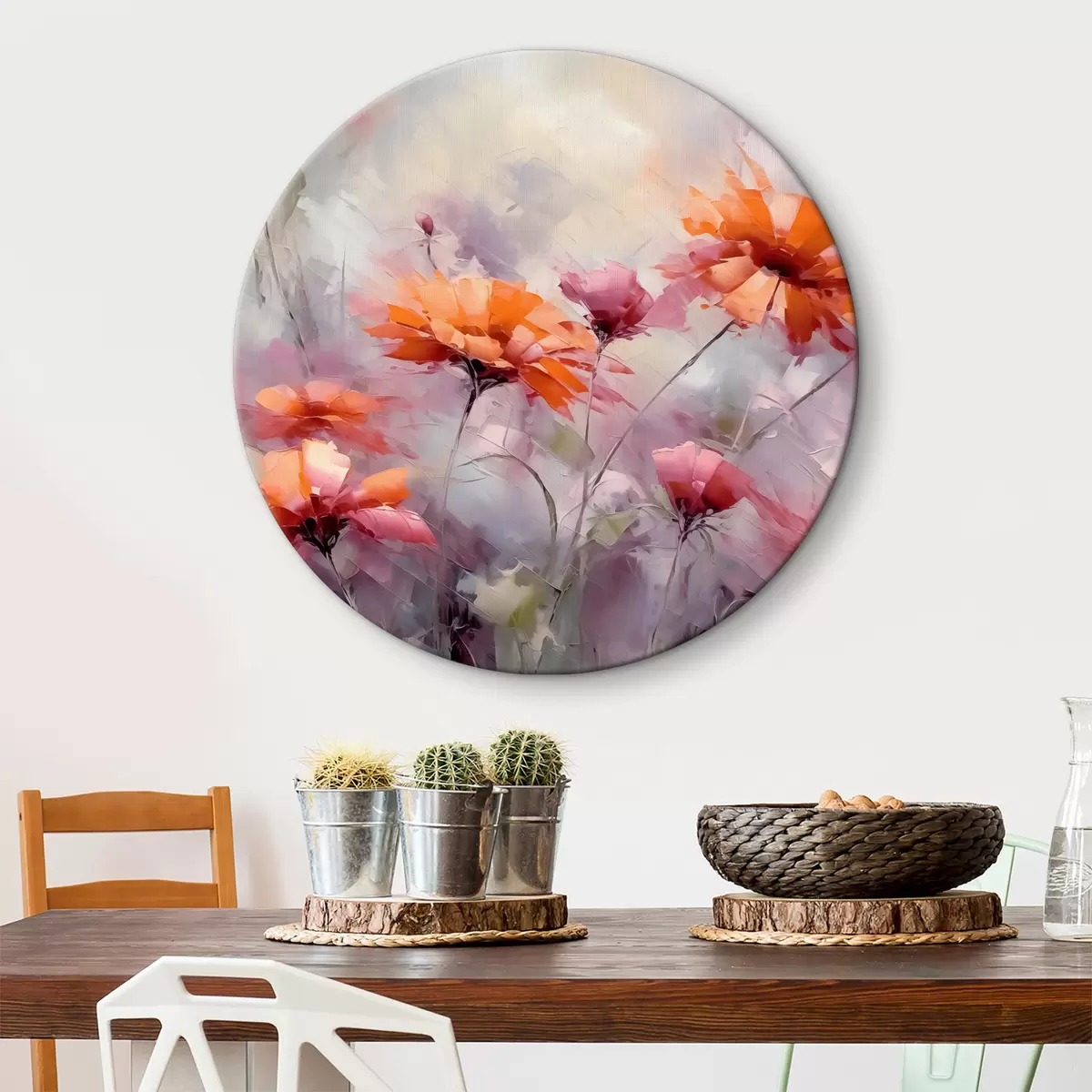 Picturi rotunde Flori abstracte, imitație de lovituri de perie, roșu, gri, violet, portocaliu Nr r40528