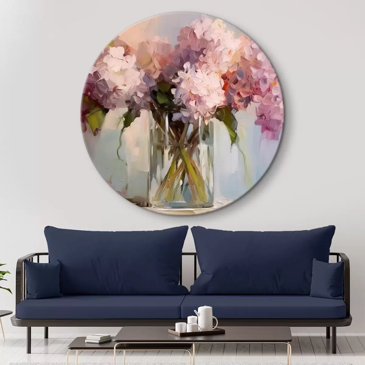 Picturi rotunde Un buchet de zambile într-o vază mare de sticlă, în culori pastelate Nr r40529