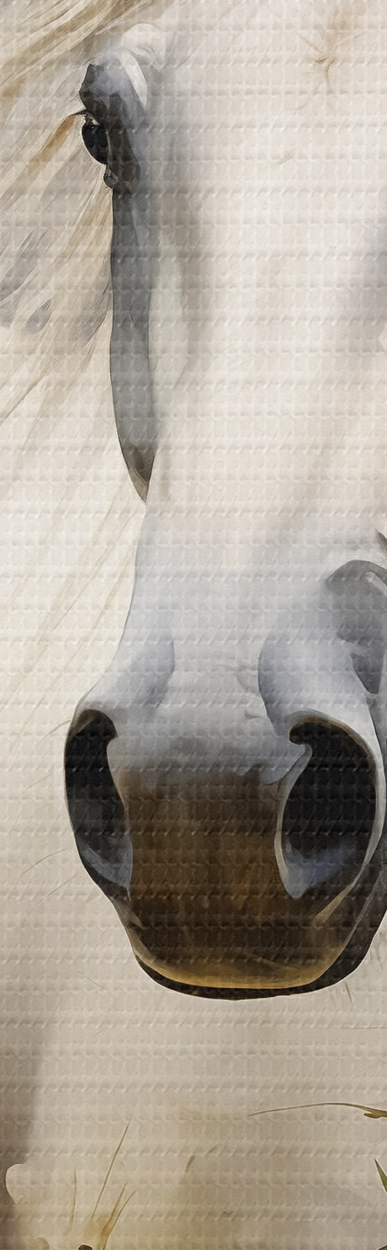 Picturi rotunde Cal alb în iarbă printre margarete Nr r40533