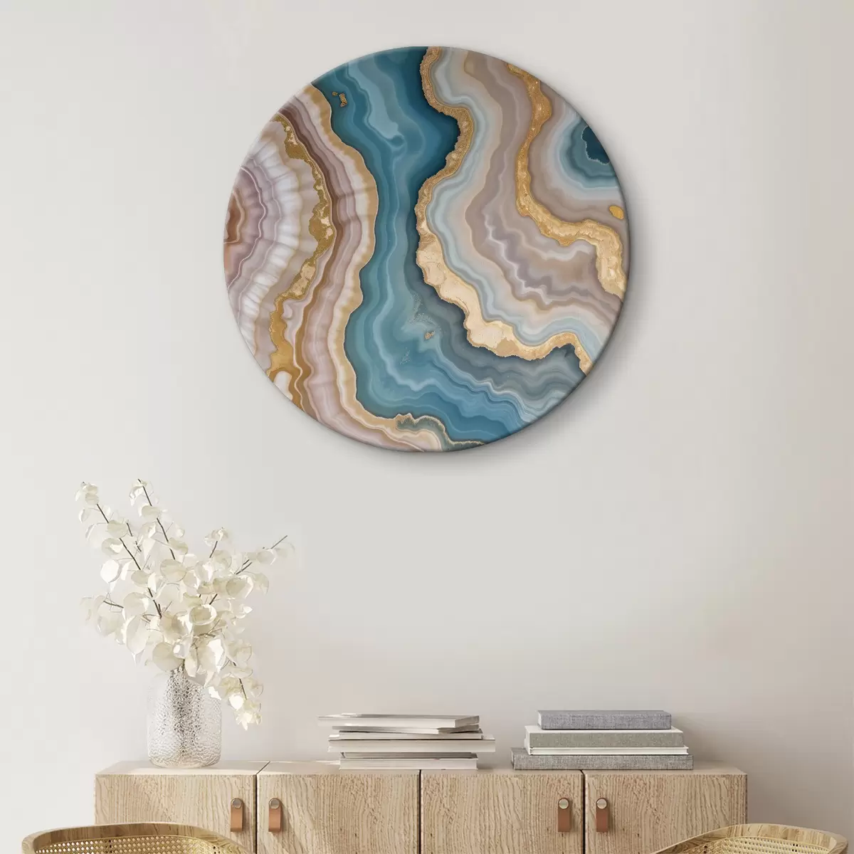 Picturi rotunde Piatră de agat abstractă colorată cu modele învolburate și straturi de turcoaz, bej, roz și galben Nr r40540
