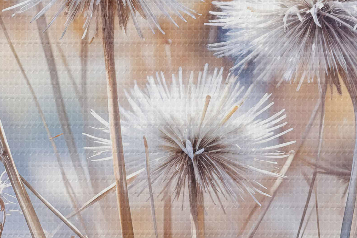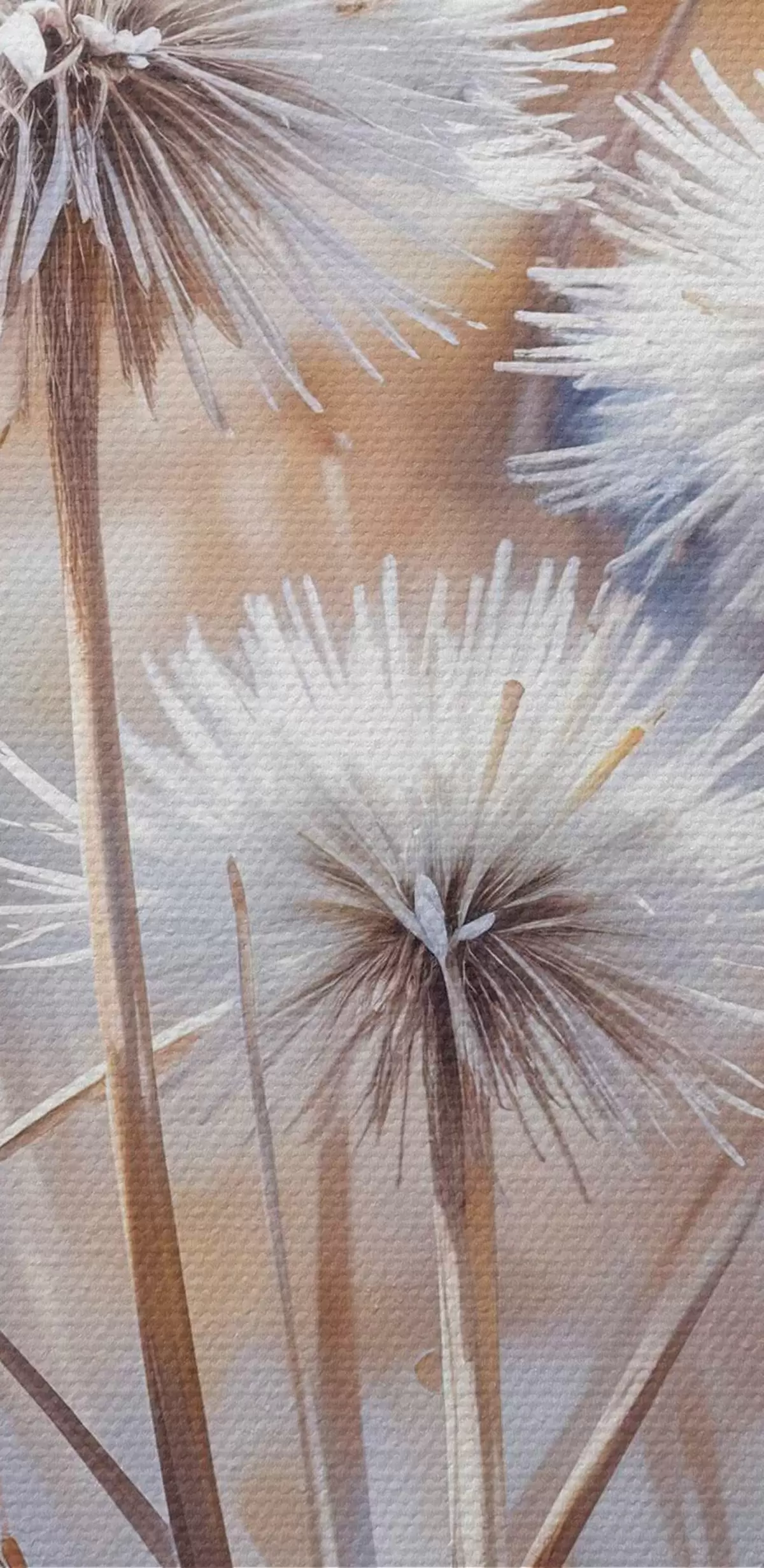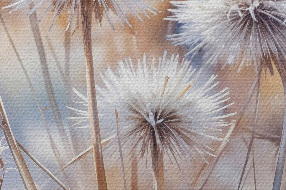 Picturi rotunde Flori albe pufoase de păpădie pe un fundal neclar de acuarelă cu iluminare caldă Nr r40541