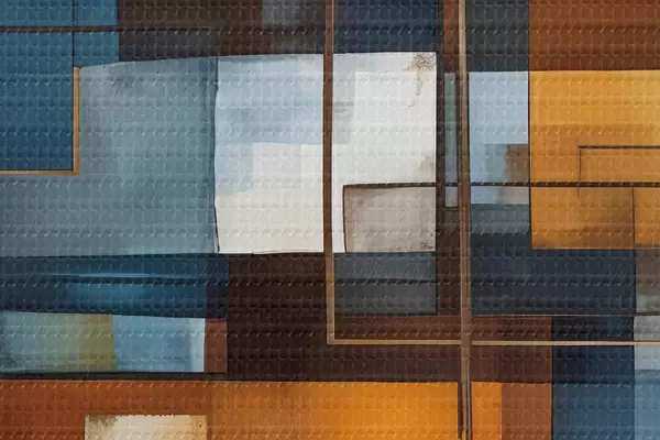 Picturi rotunde Forme geometrice abstracte în nuanțe de albastru, portocaliu și maro creează o compoziție modernă, minimalistă r40563