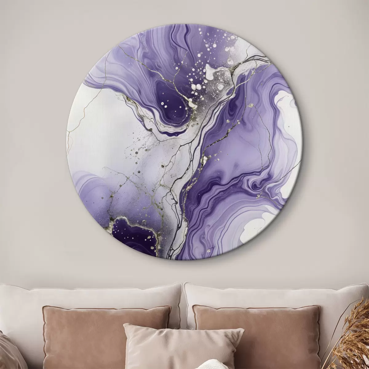 Picturi rotunde Compoziție artistică abstractă fluidă imprimată cu cerneluri purpurii, albe și gri Nr r40566
