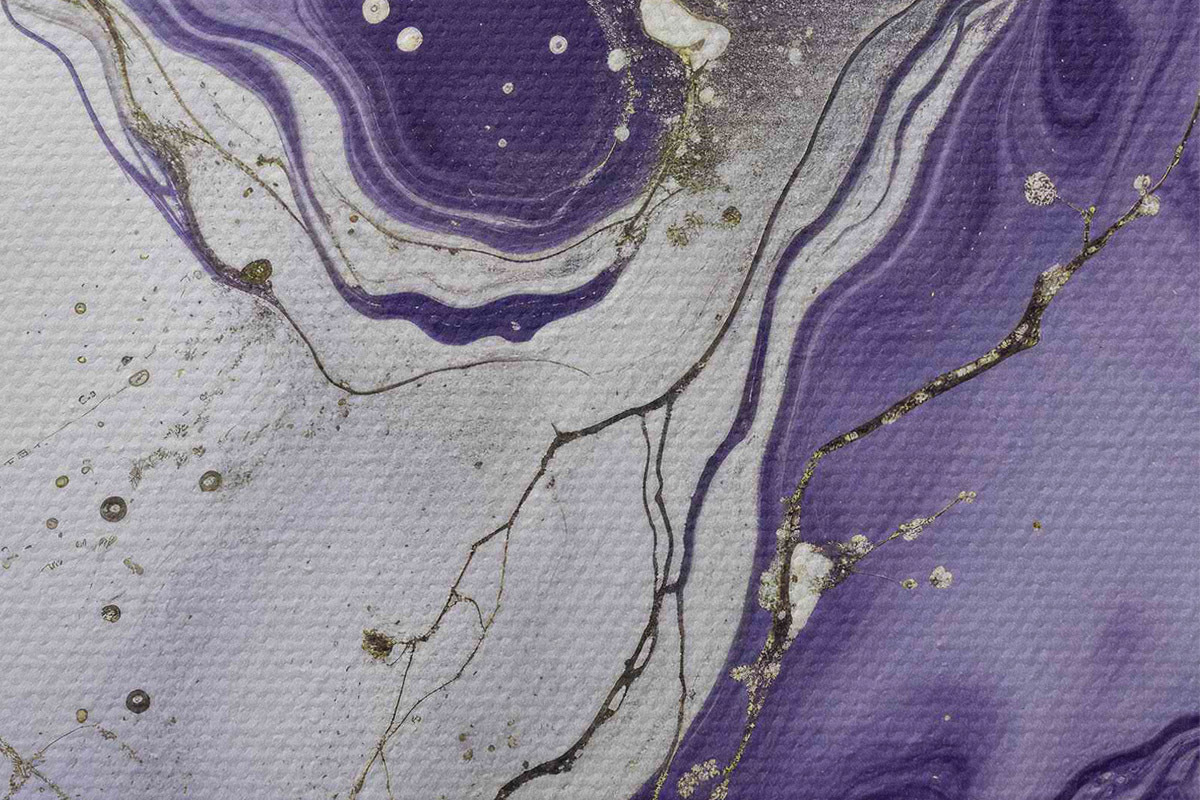 Picturi rotunde Compoziție artistică abstractă fluidă imprimată cu cerneluri purpurii, albe și gri r40566