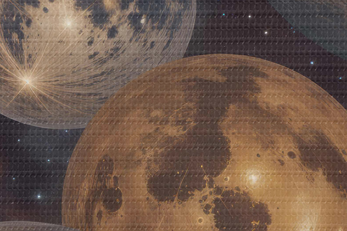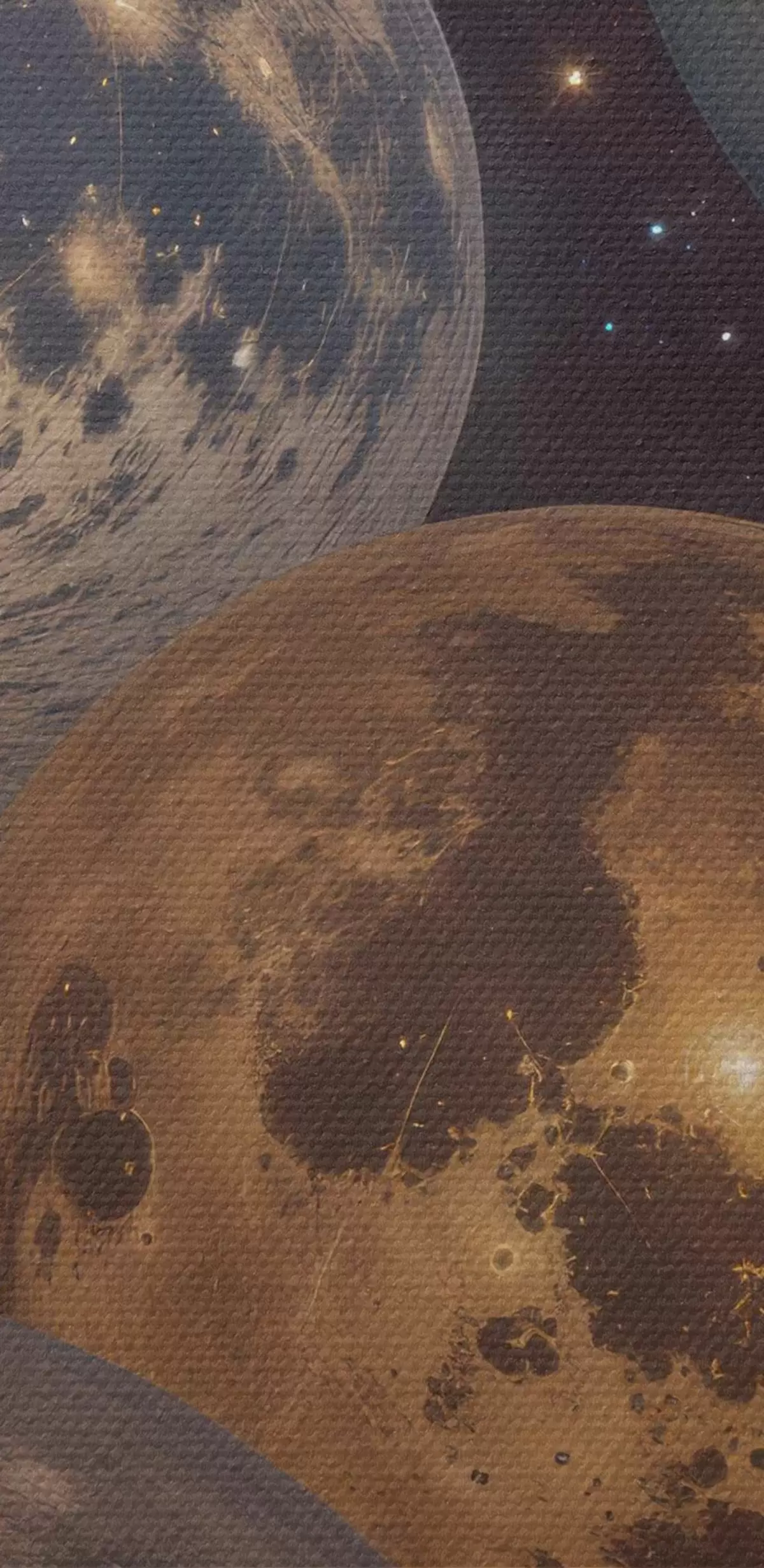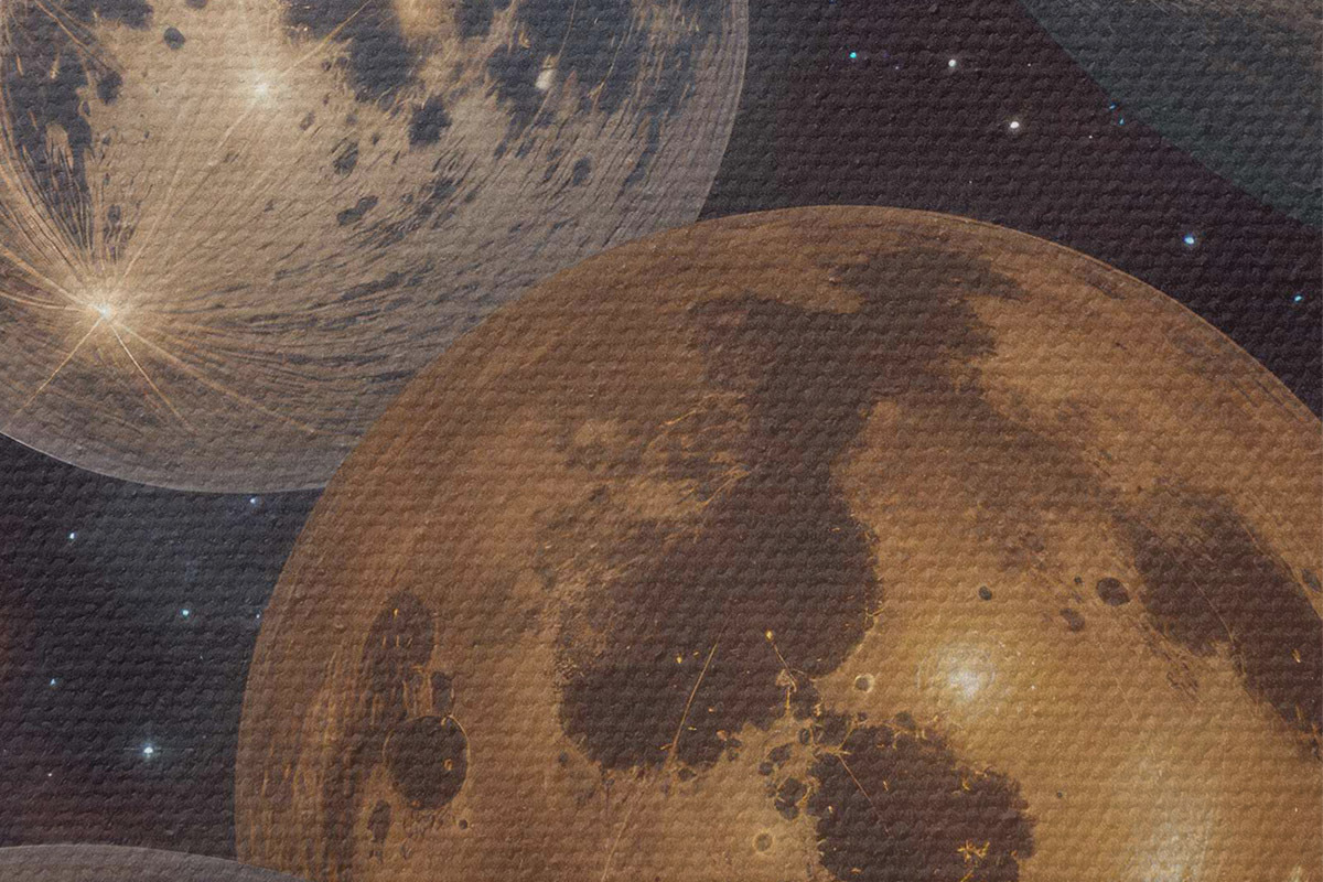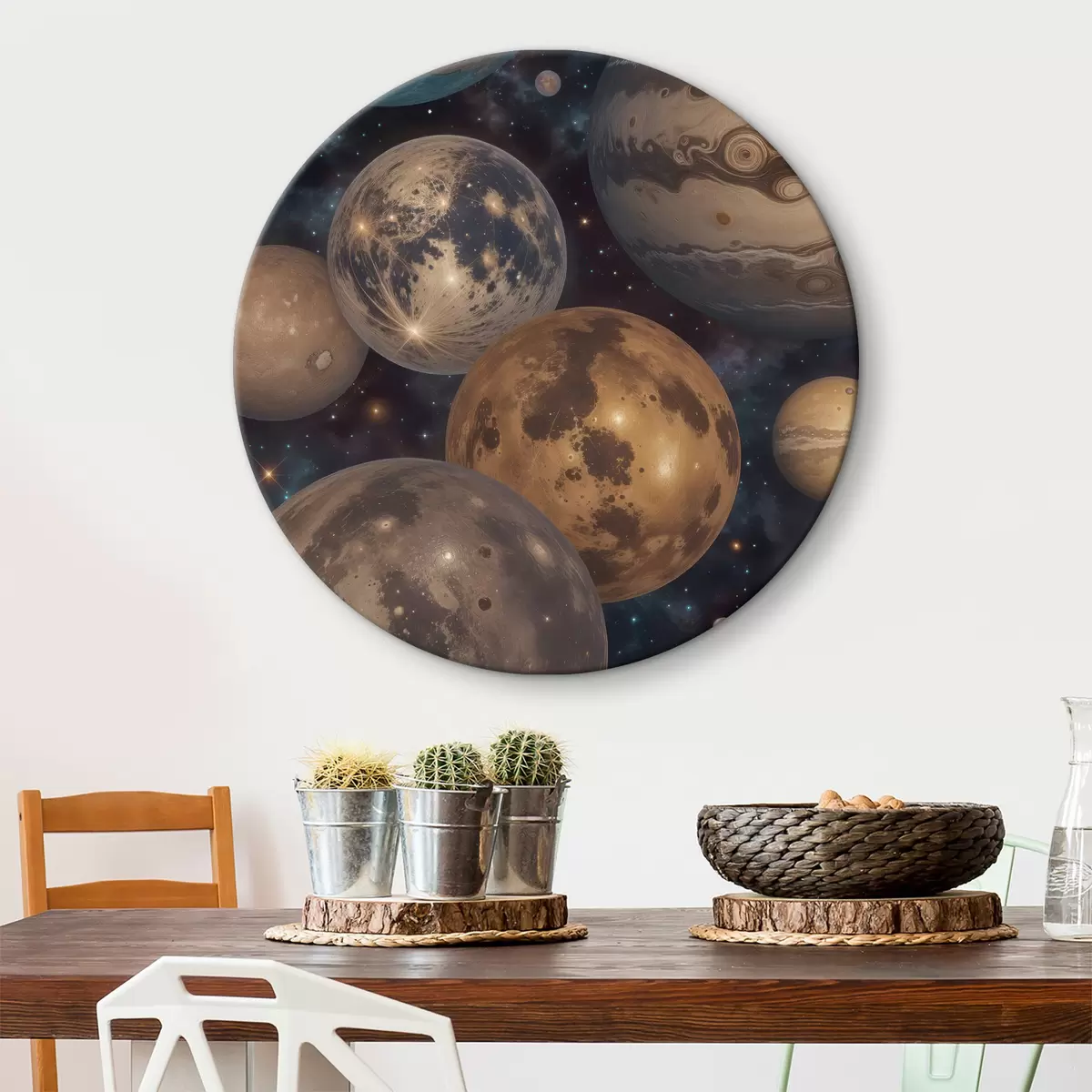 Picturi rotunde Imprimare spațială abstractă cu planete și luni colorate plutind pe cerul înstelat al nopții Nr r40607