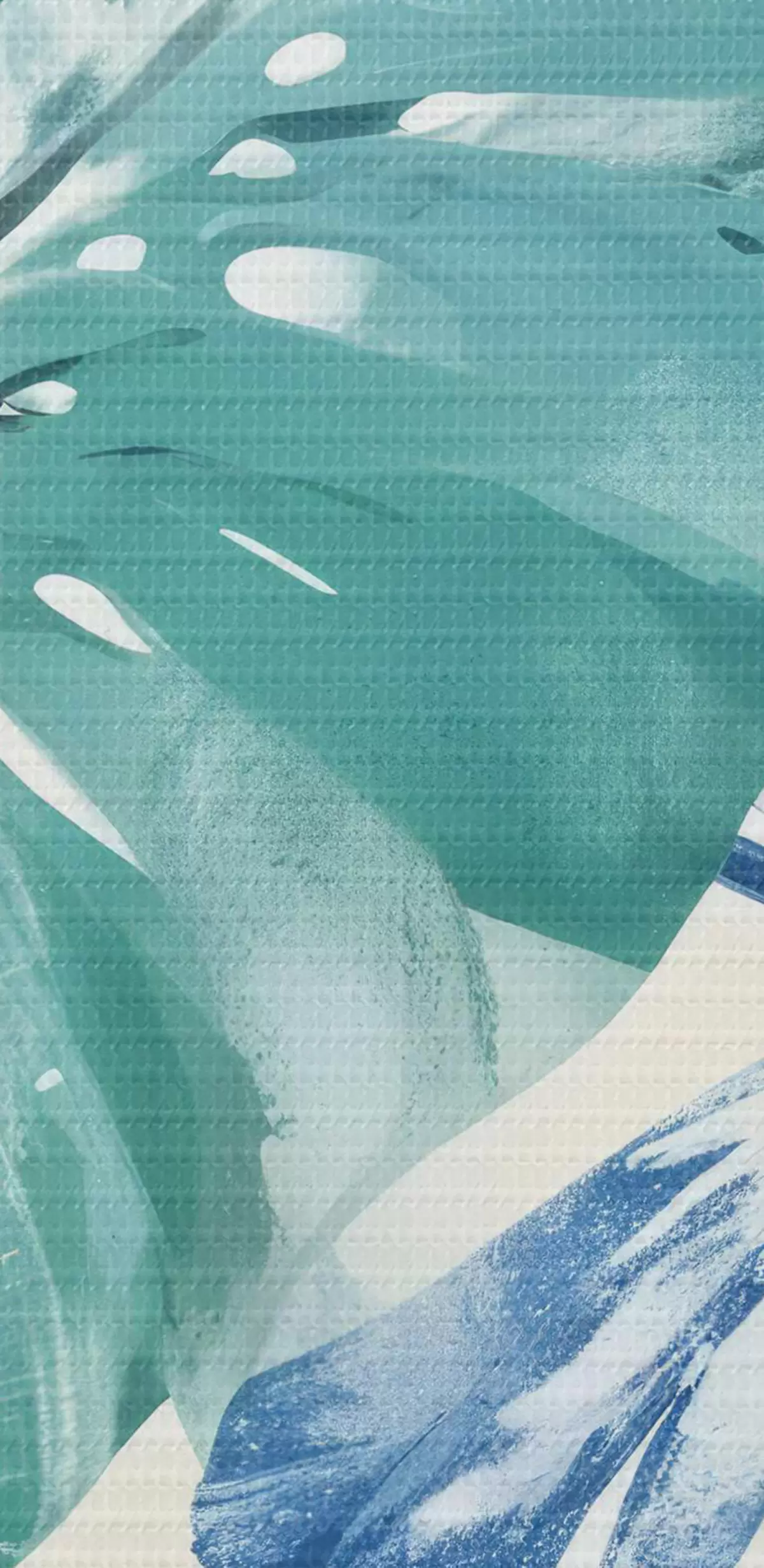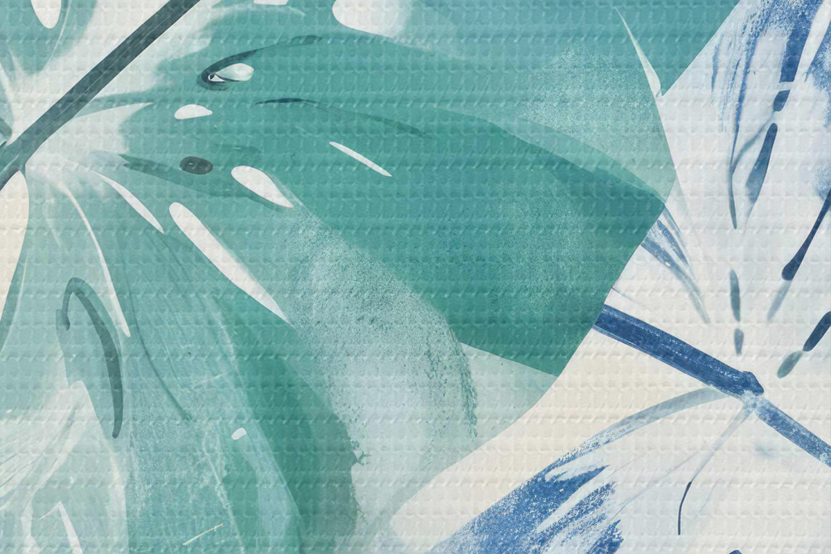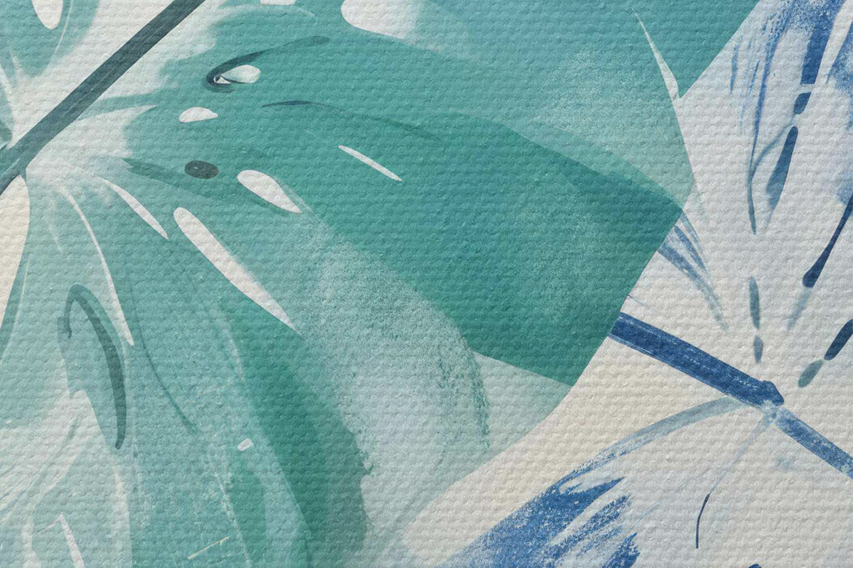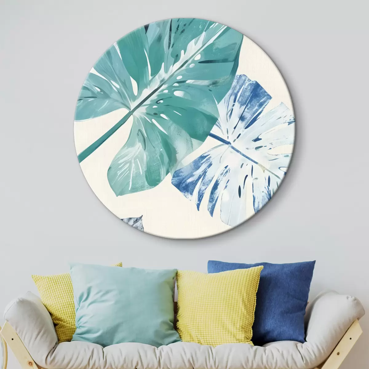 Picturi rotunde O imprimare cu frunze tropicale mari în nuanțe de albastru și verde pe un fundal deschis Nr r40608