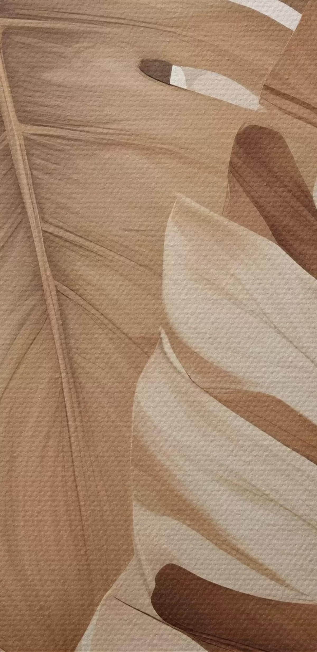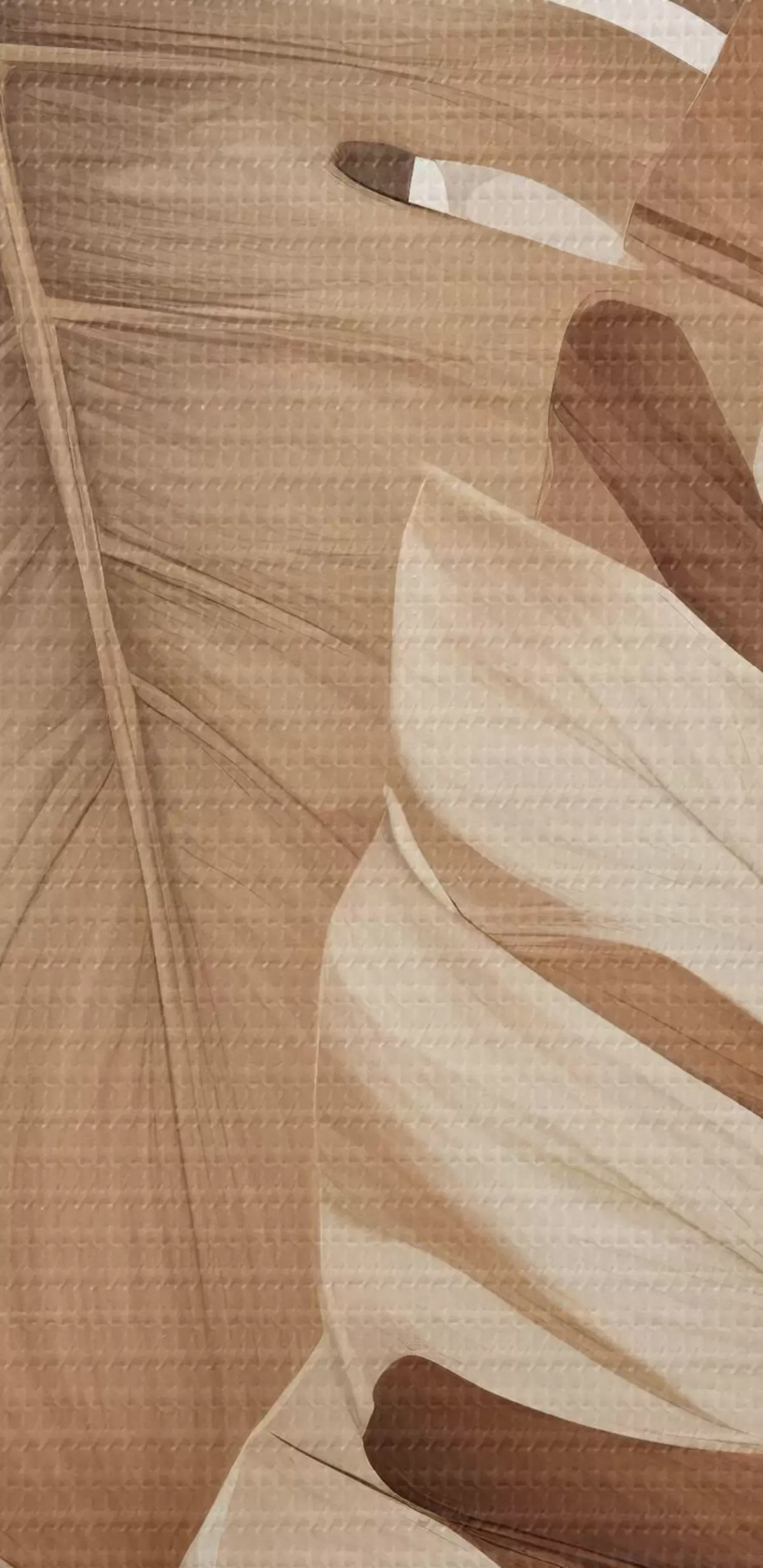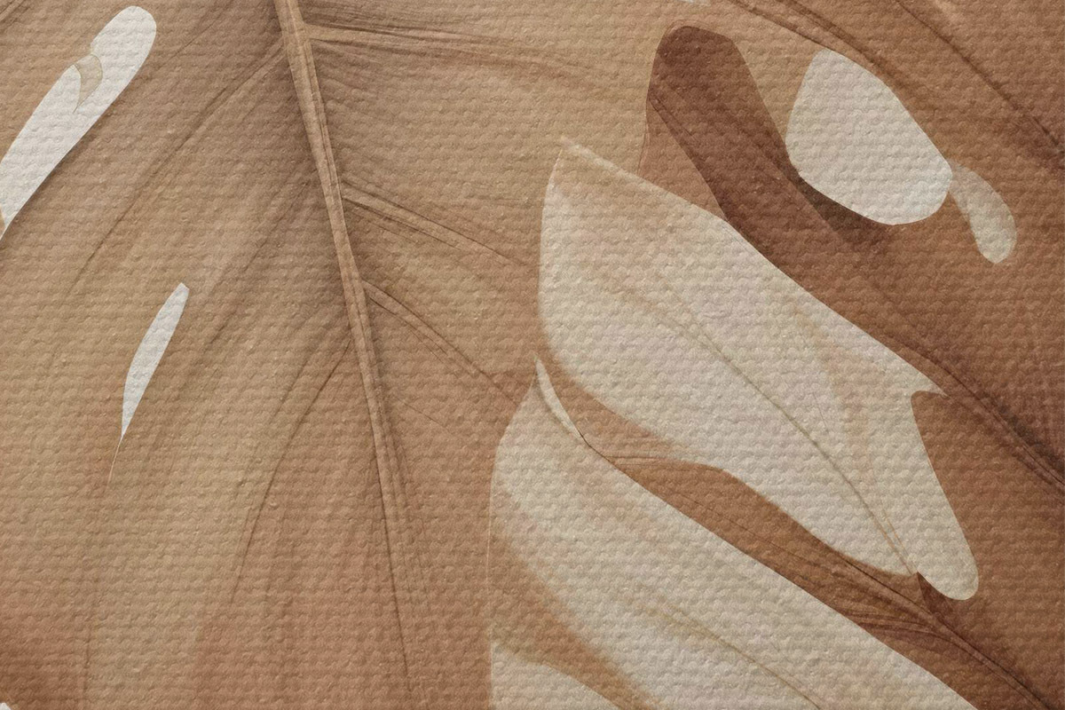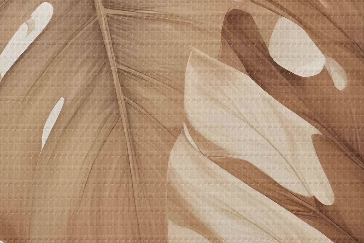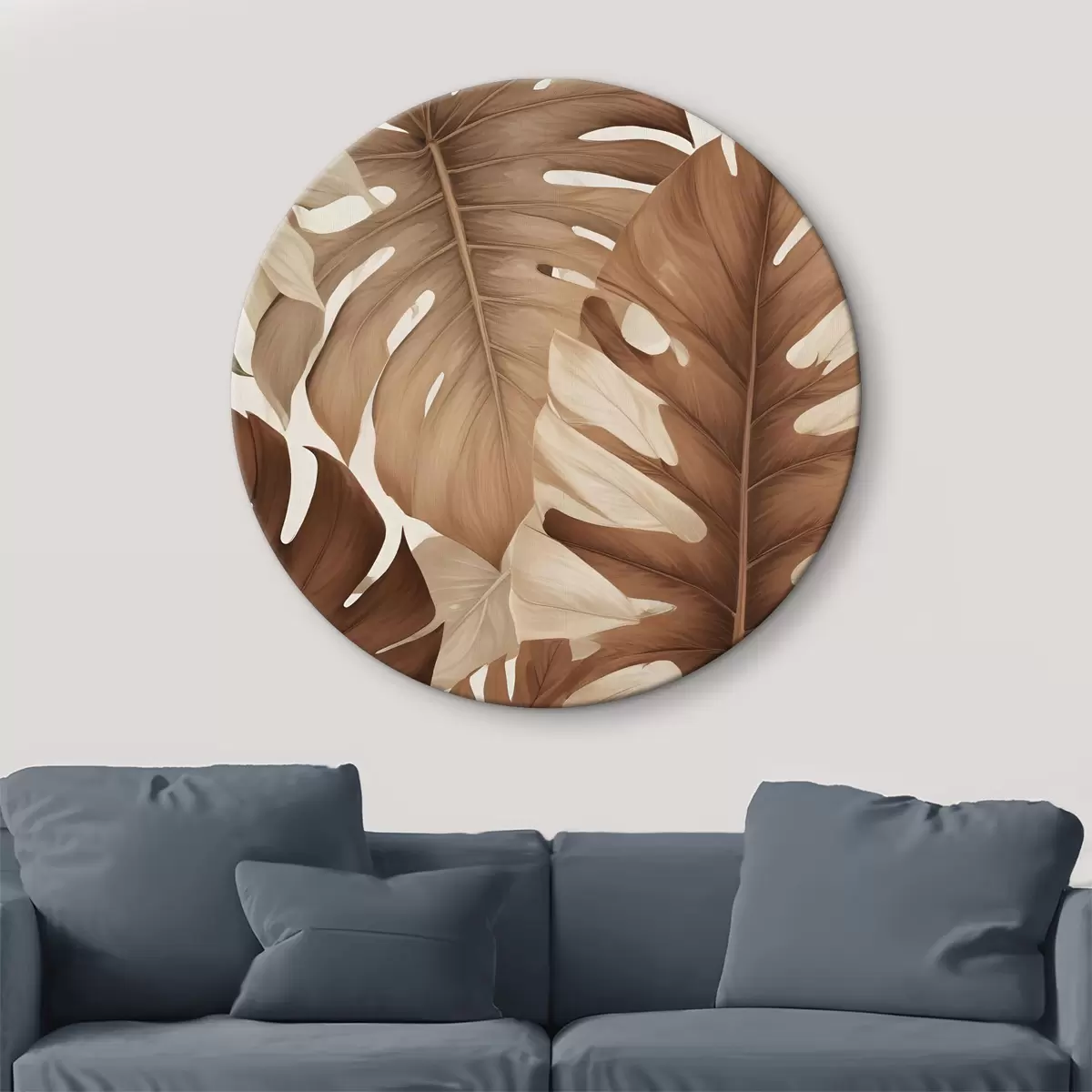 Picturi rotunde O imprimare de frunze tropicale cu o textură naturală, organică, în nuanțe de maro și bej Nr r40613