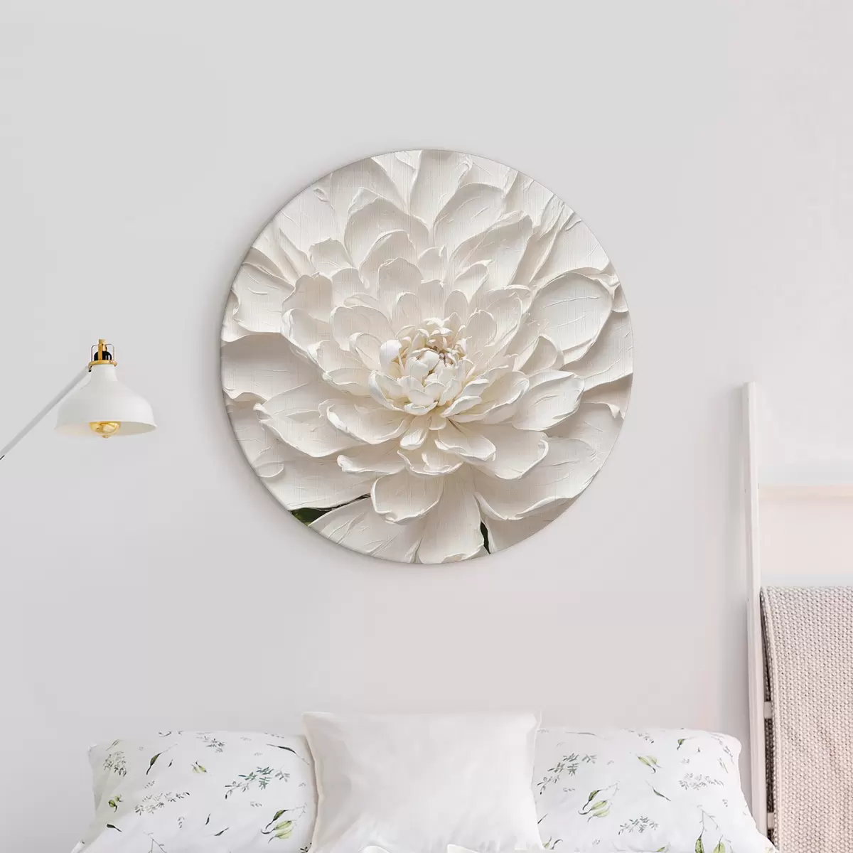 Picturi rotunde Floare albă în ulei cu tulpină verde r40620