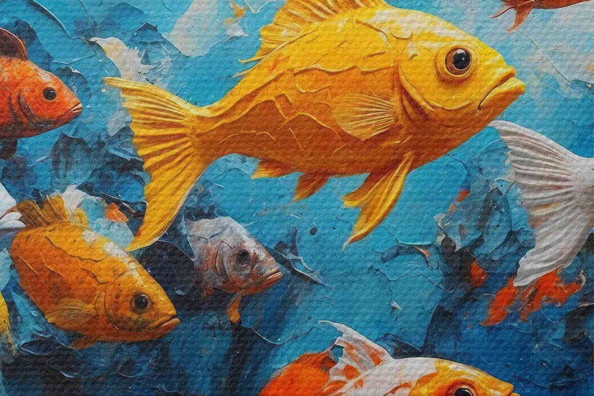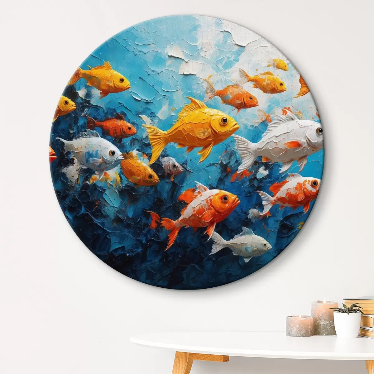 Picturi rotunde Pește pe un fundal abstract de ulei Nr r40632