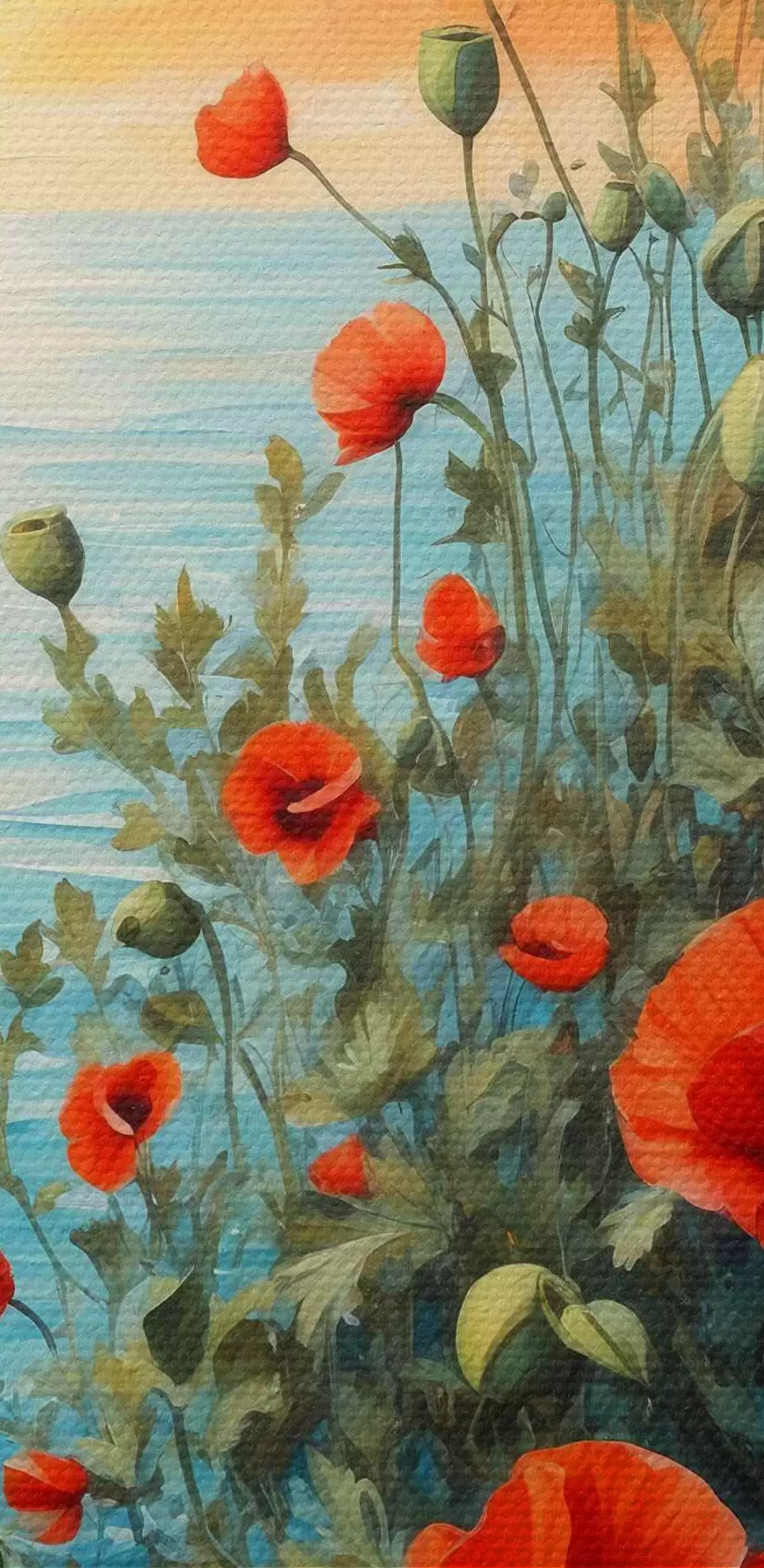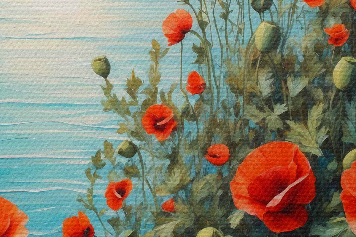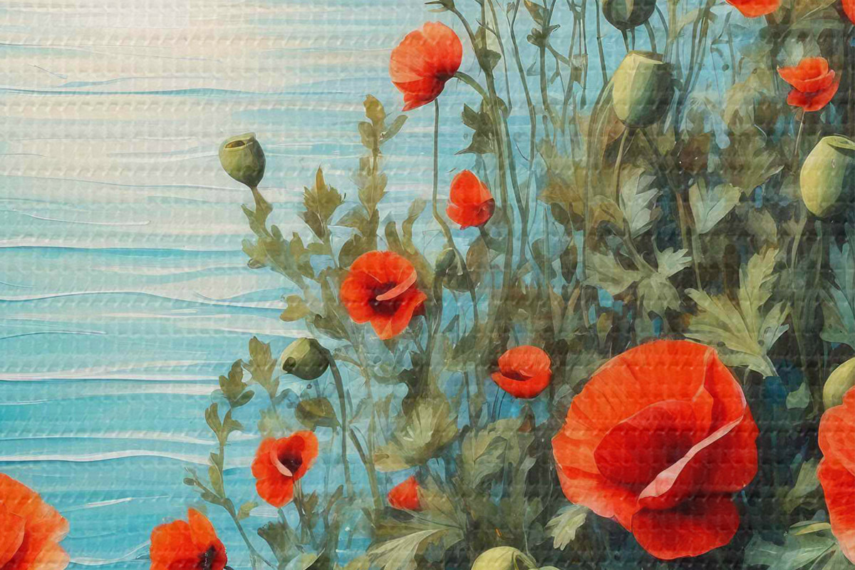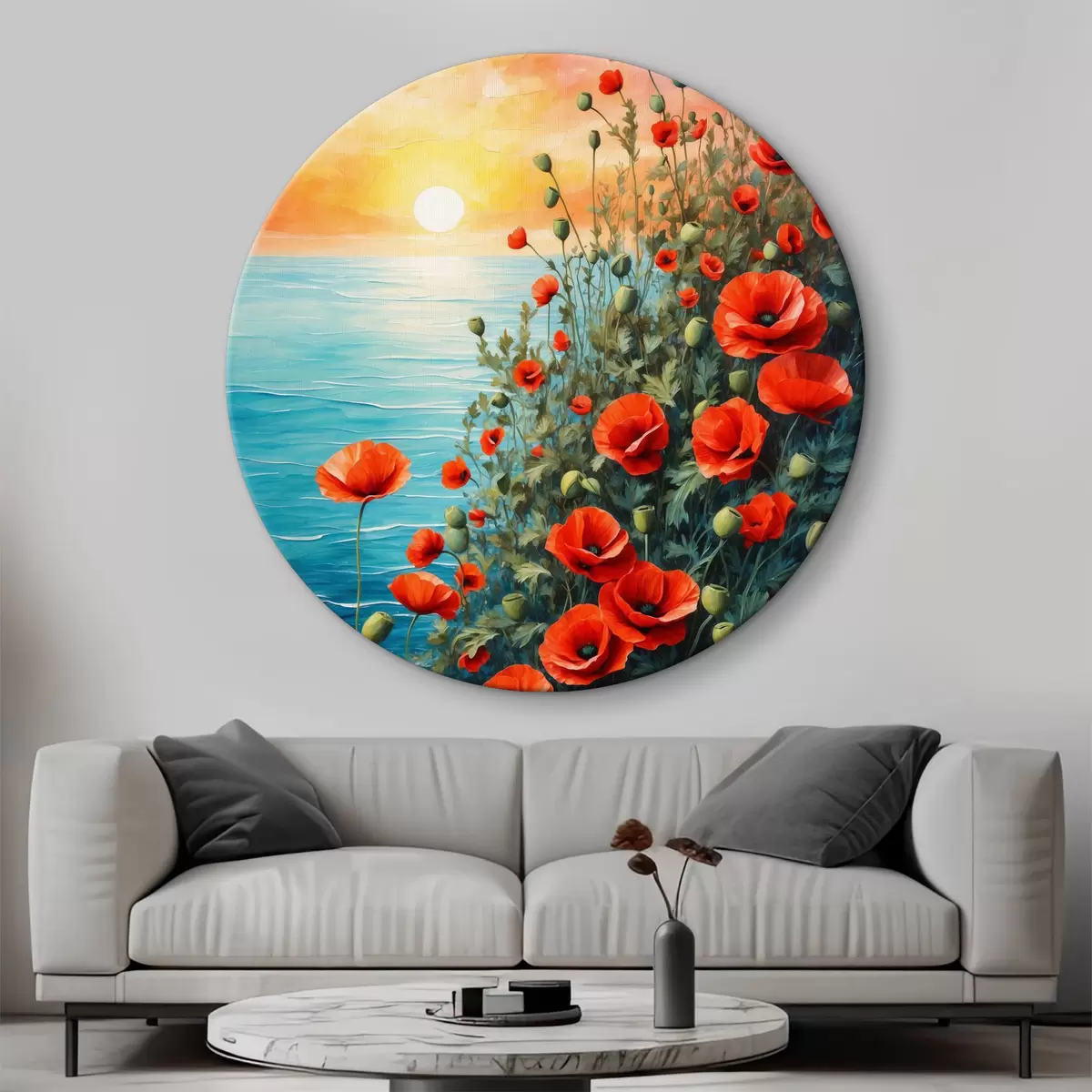 Picturi rotunde Mac înflorit pe fundalul mării r40637