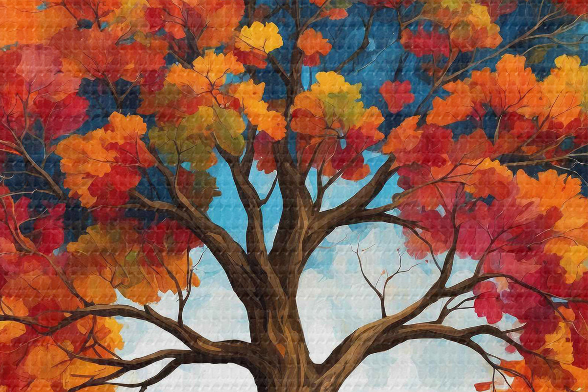 Picturi rotunde Un copac imens cu nuanțe multicolore Nr r40638