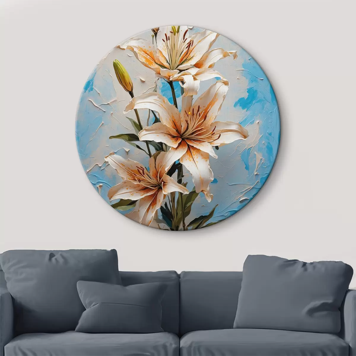 Picturi rotunde Crini pe un fundal abstract albastru și alb Nr r40640