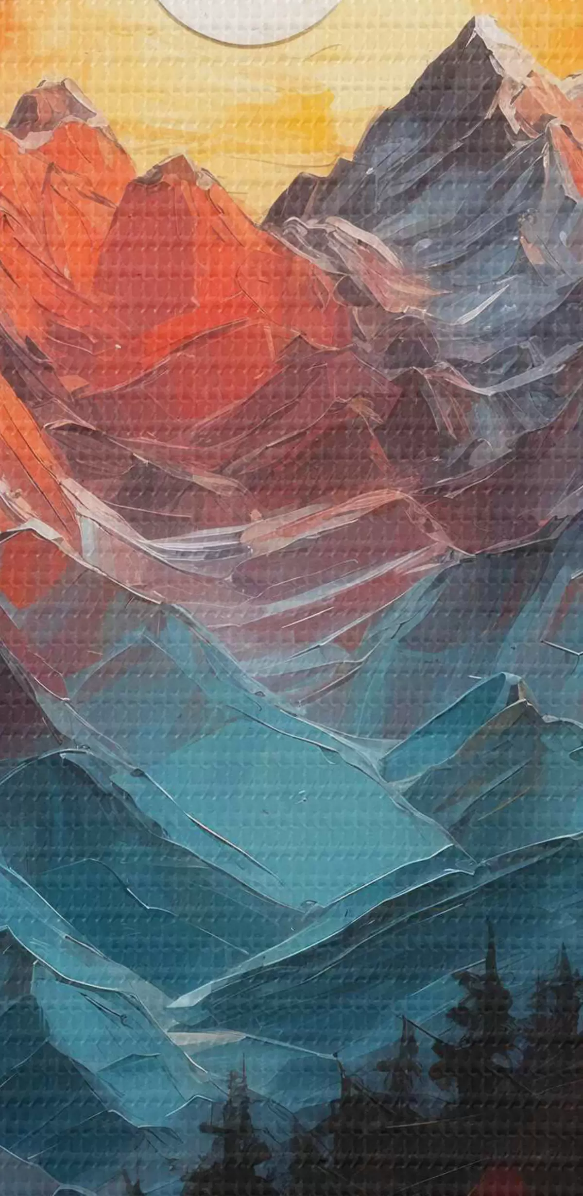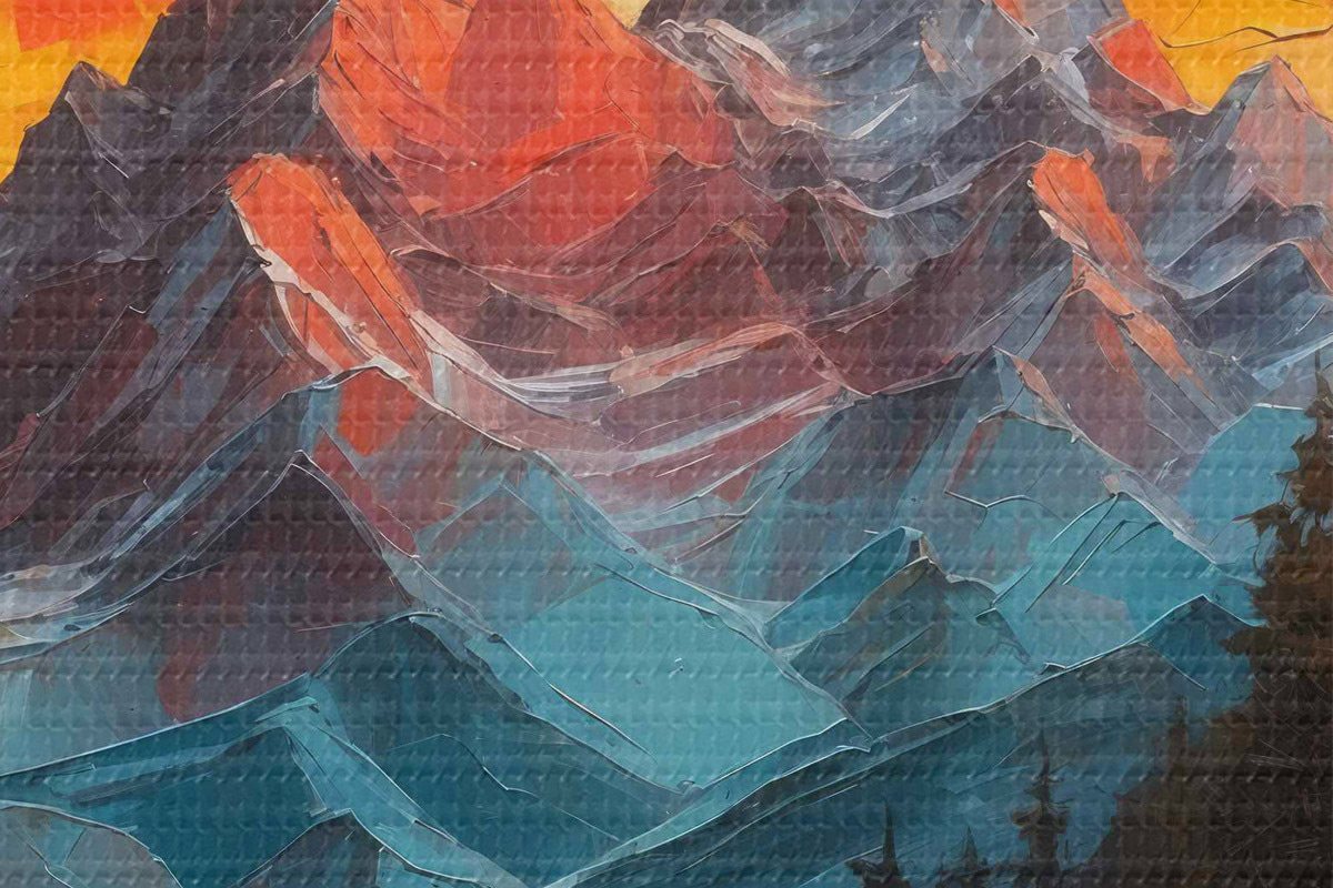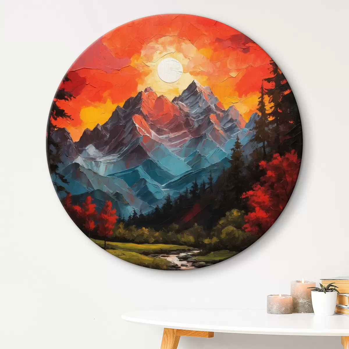 Picturi rotunde Munți și cer roșu la apus de soare Nr r40641