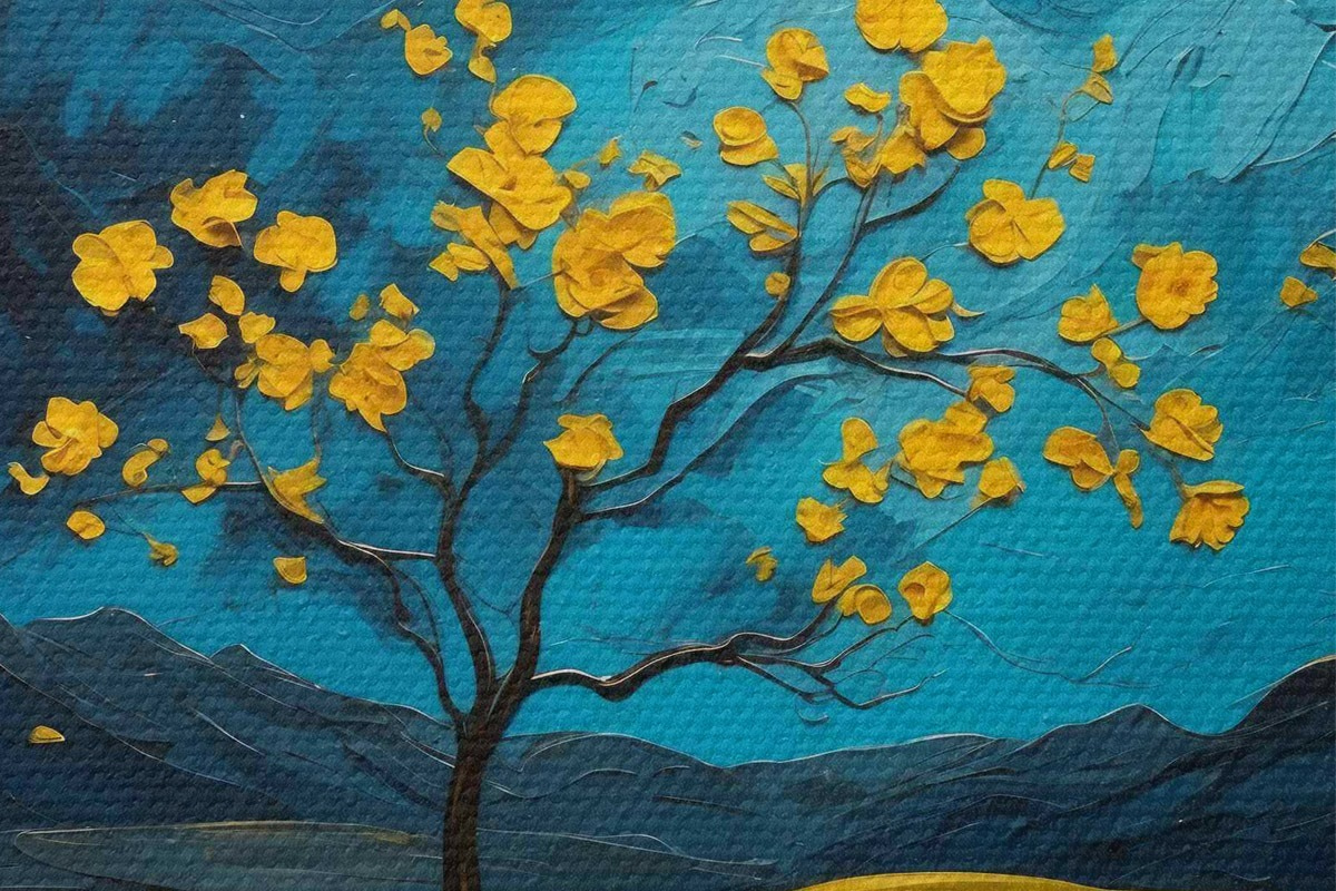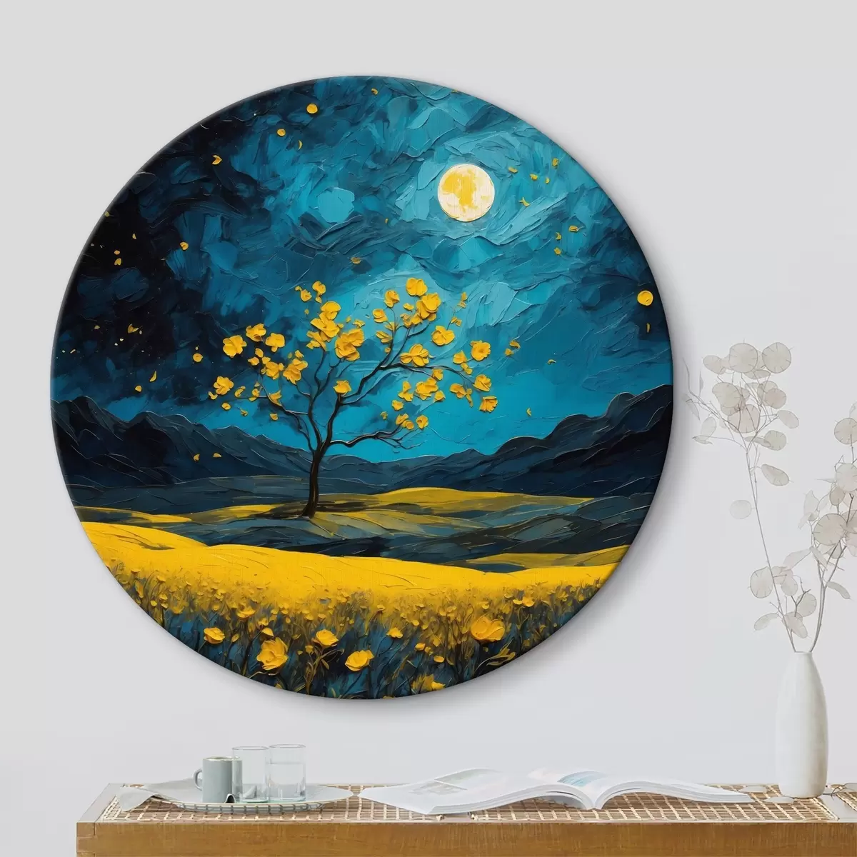 Picturi rotunde Câmp de flori galbene noaptea Nr r40643